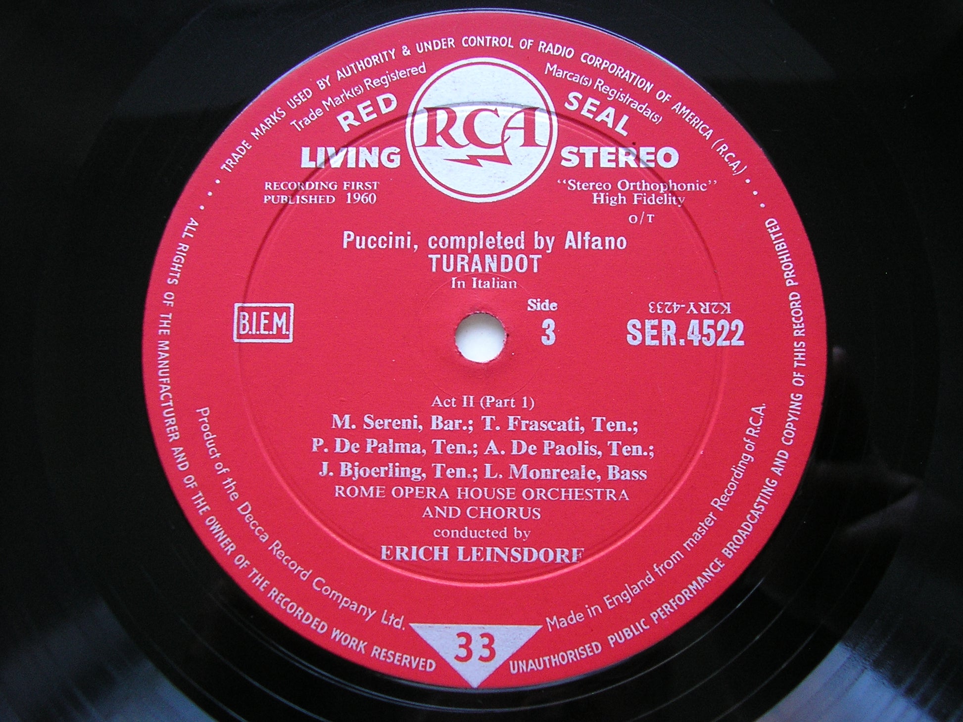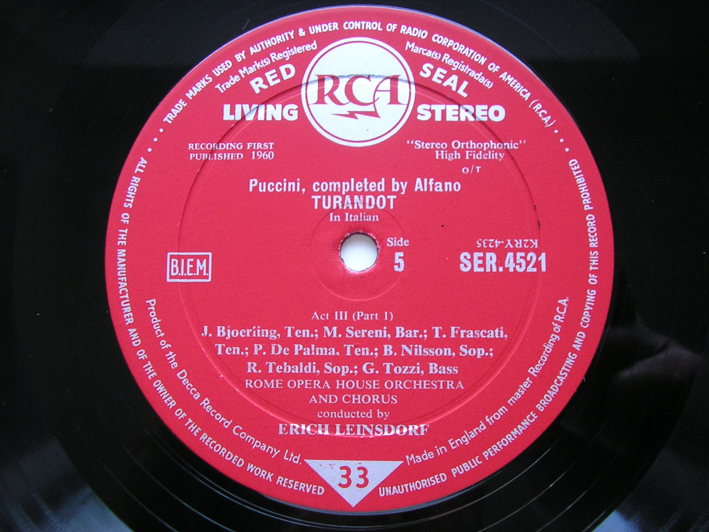 SER 4520 - 2  PUCCINI: TURANDOT    BIRGIT NILSSON / JUSSI BJOERLING / RENATA TEBALDI / GIORGIO TOZZI / ROME OPERA / ERICH LEINSDORF