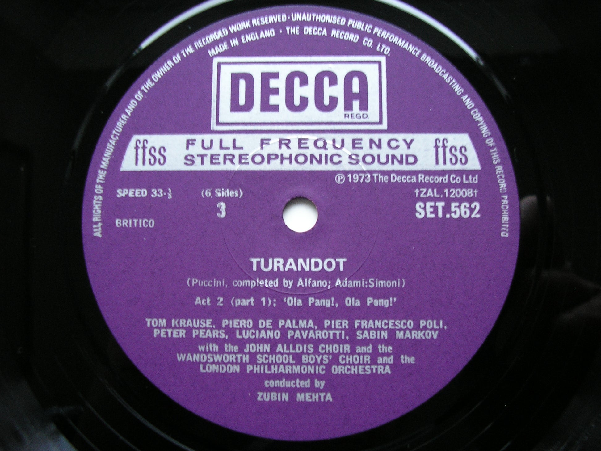 PUCCINI: TURANDOT SUTHERLAND / PAVAROTTI / CABALLE / LONDON PHILHARMONIC / ZUBIN MEHTA SET 561 - 3