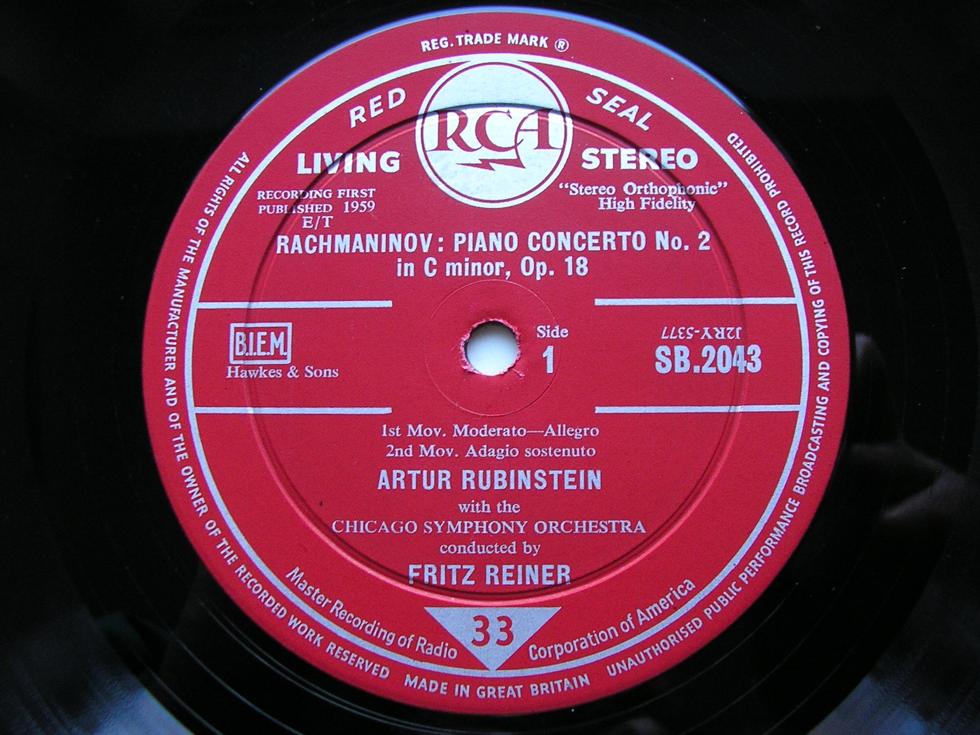SB 2043 (LSC 2068)  RACHMANINOV: PIANO CONCERTO No. 2    ARTUR RUBINSTEIN / FRITZ REINER / CHICAGO SYMPHONY ORCHESTRA