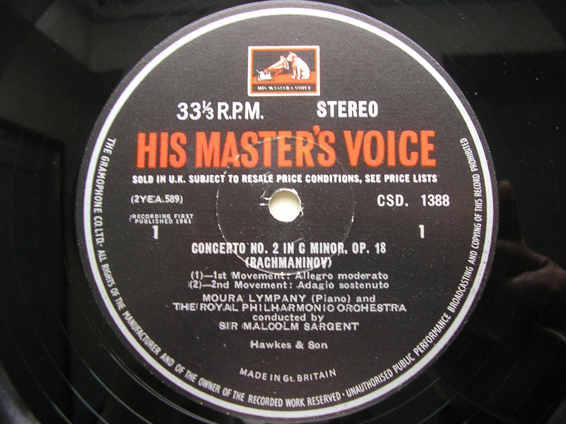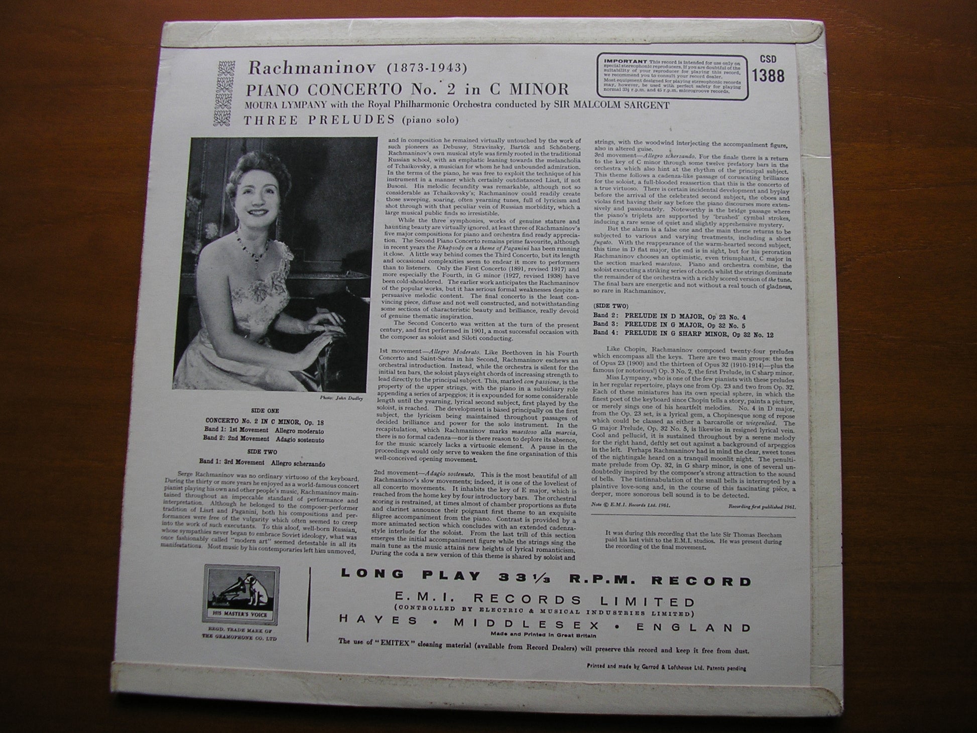 CSD 1388  RACHMANINOV: PIANO CONCERTO No. 2 / THREE PRELUDES     MOURA LYMPANY / ROYAL PHILHARMONIC ORCHESTRA / SIR MALCOLM SARGENT