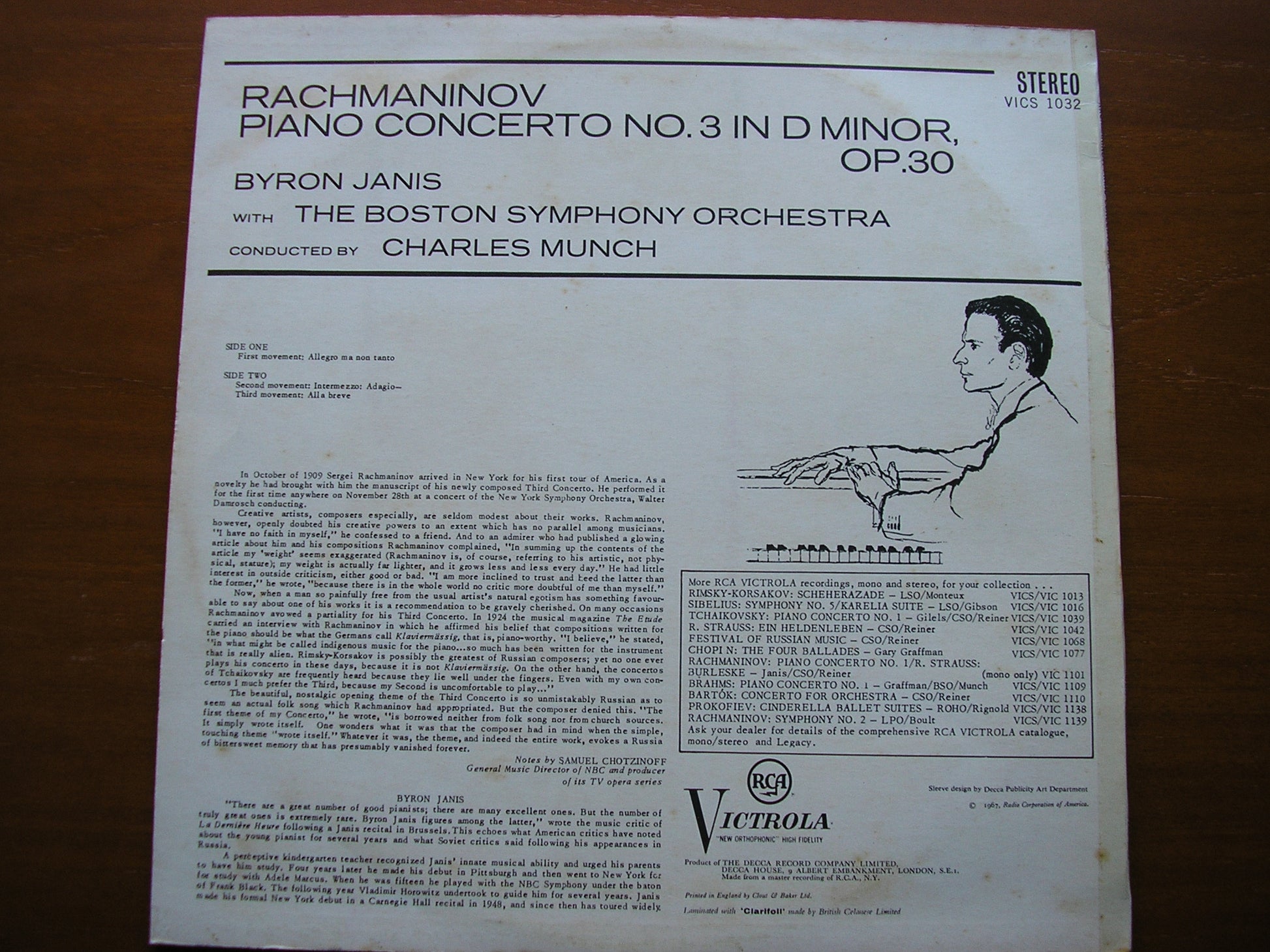 VICS 1032  RACHMANINOV: PIANO CONCERTO No. 3   BYRON JANIS / BOSTON SYMPHONY ORCHESTRA / CHARLES MUNCH