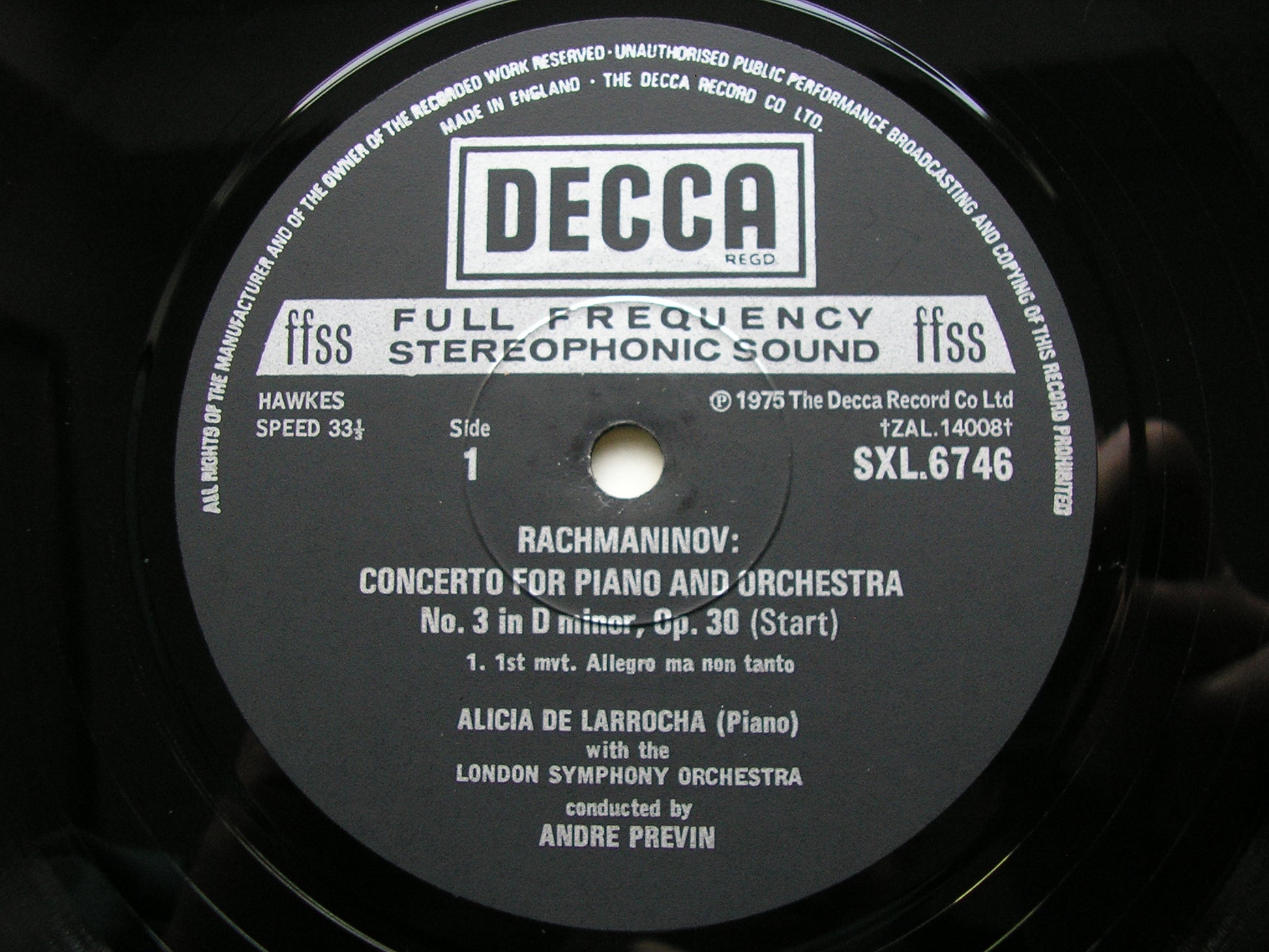 SXL 6746  RACHMANINOV: PIANO CONCERTO No. 3    ALICIA DE LARROCHA / LONDON SYMPHONY ORCHESTRA / ANDRE PREVIN