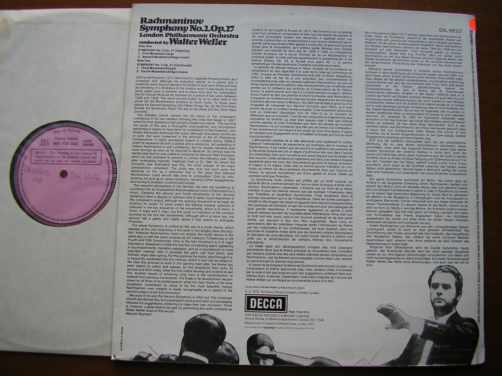 SXL 6623  RACHMANINOV: SYMPHONY No. 2    WALTER WELLER / LONDON PHILHARMONIC ORCHESTRA