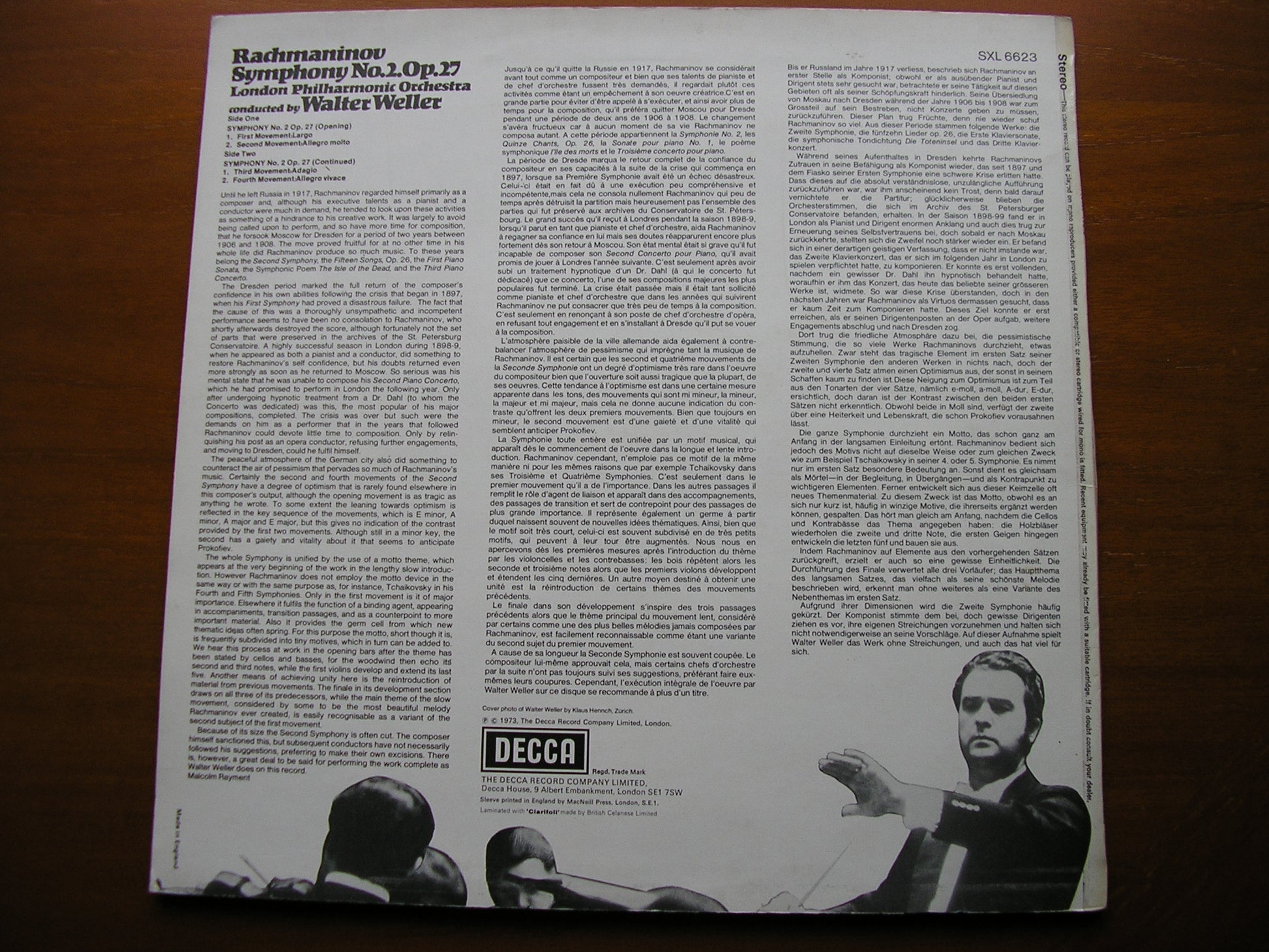 SXL 6623  RACHMANINOV: SYMPHONY No. 2    WALTER WELLER / LONDON PHILHARMONIC ORCHESTRA