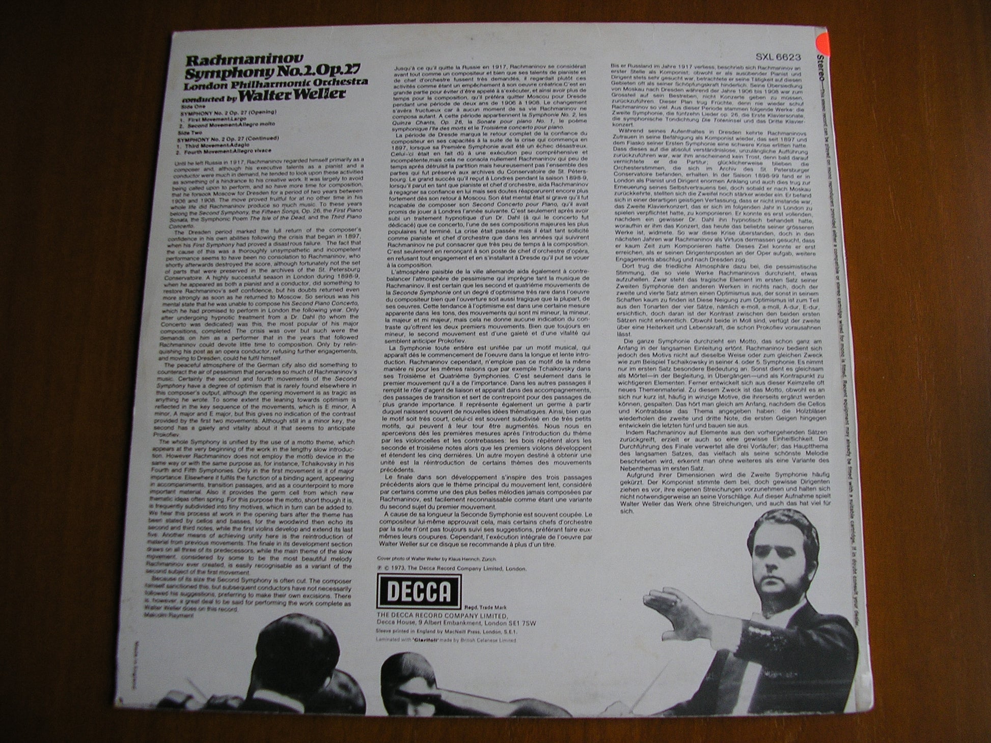 SXL 6623  RACHMANINOV: SYMPHONY No. 2     WALTER WELLER / LONDON PHILHARMONIC ORCHESTRA