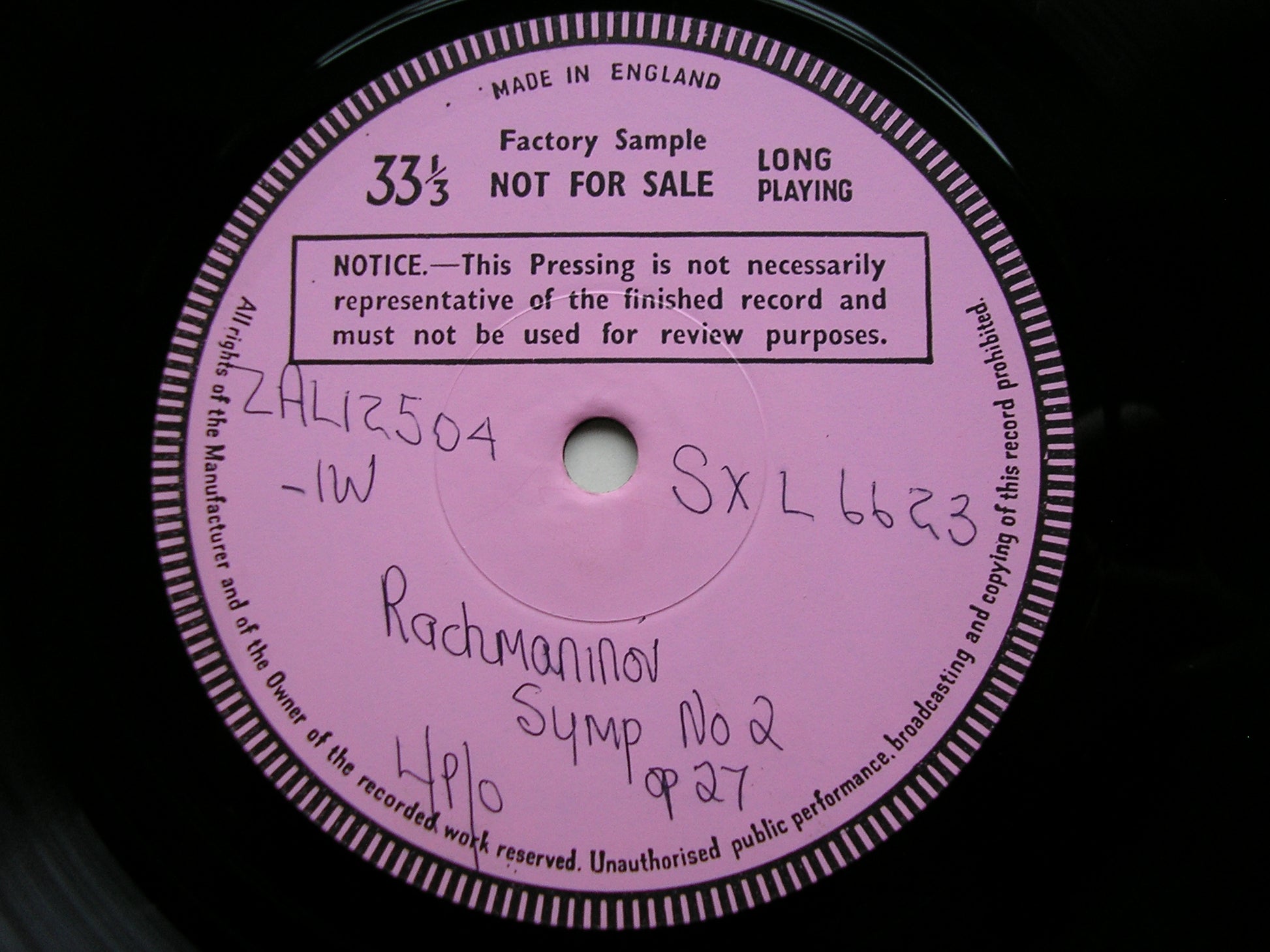RACHMANINOV: SYMPHONY No. 2 WELLER / LONDON PHILHARMONIC test pressing SXL 6623