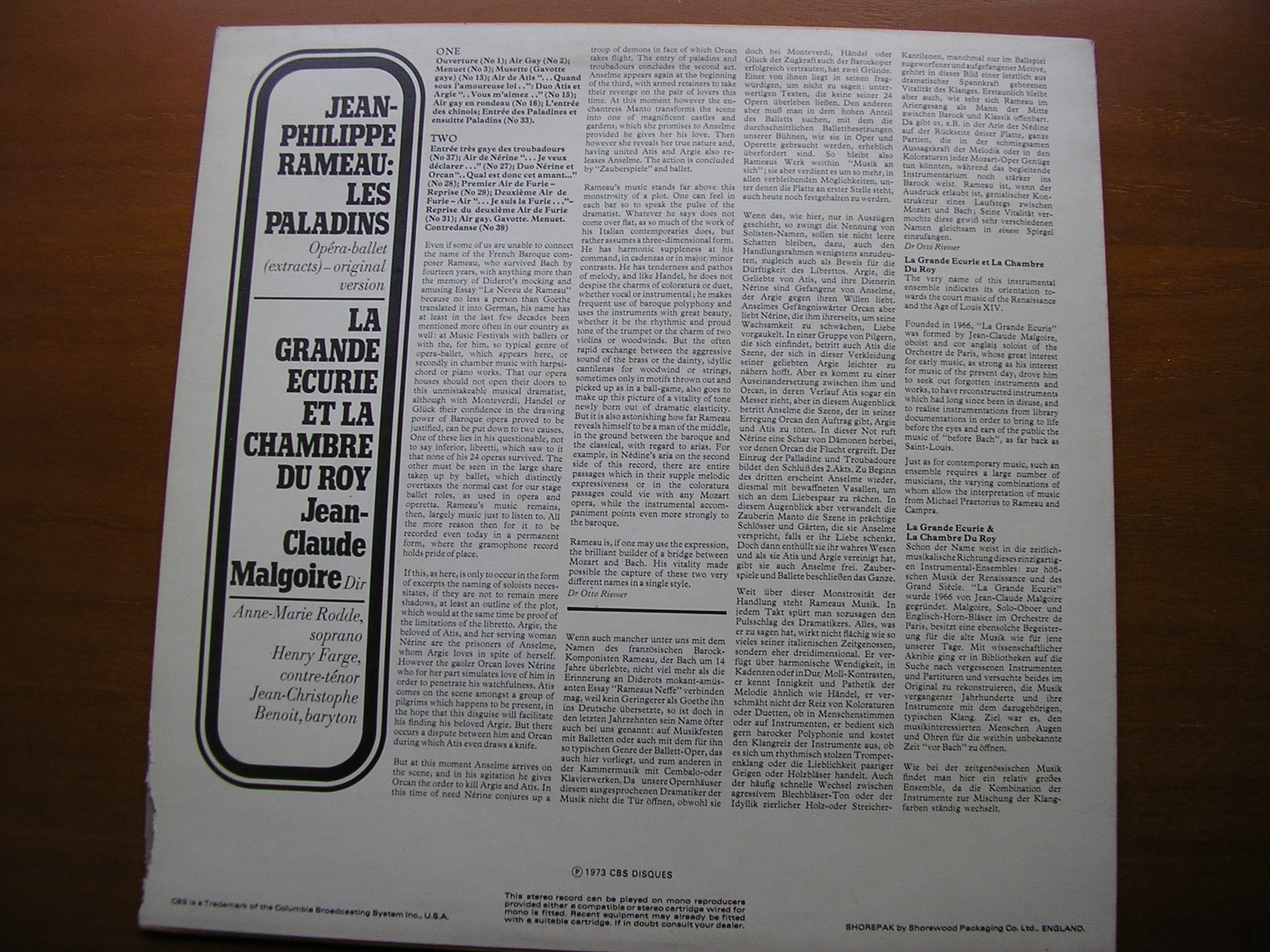 RAMEAU: LES PALADINS SOLOISTS / LA GRANDE ECURIE ET LA CHAMBRE DU ROI / MALGOIRE 73065