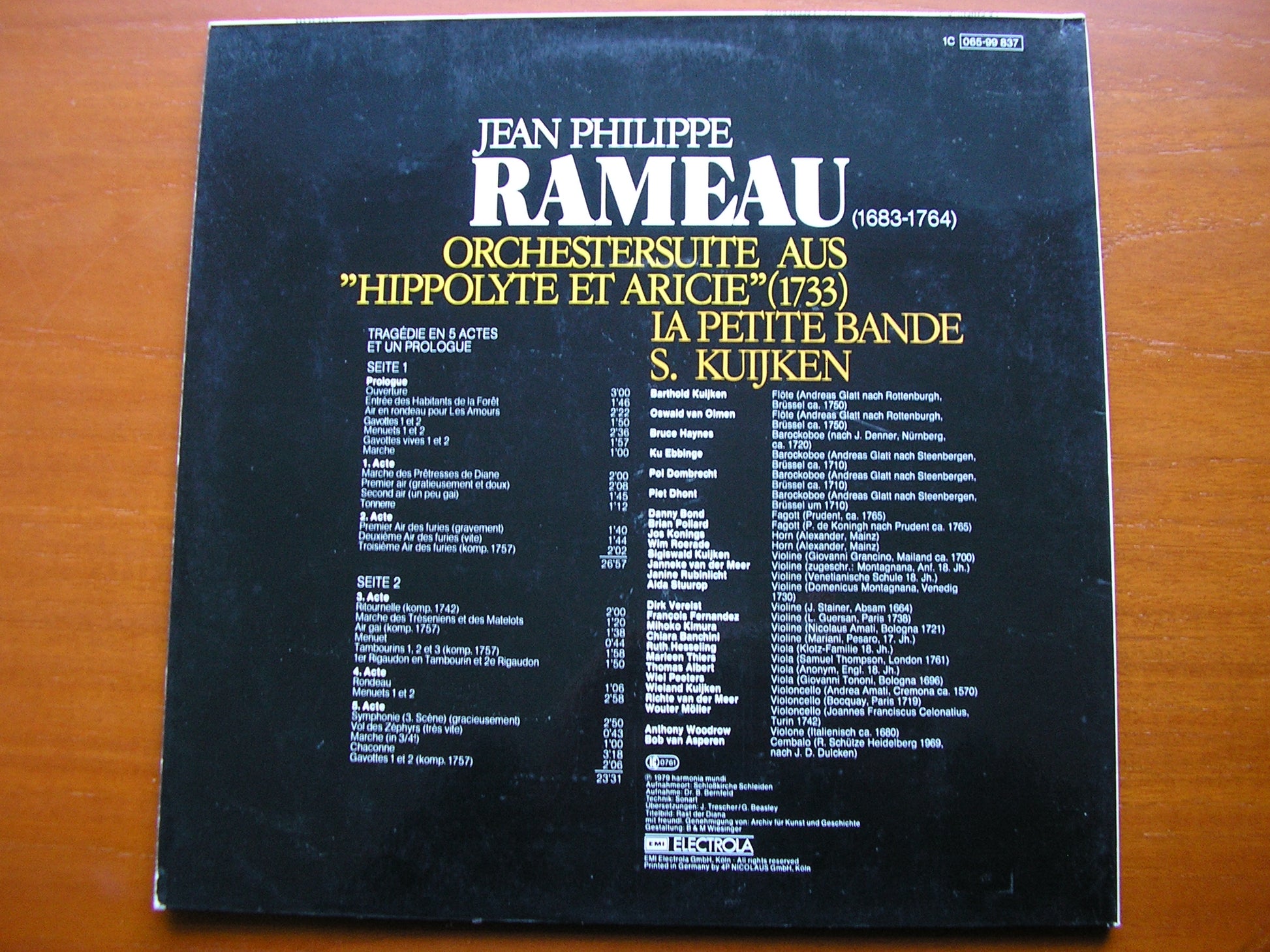 065 99 837  RAMEAU: ORCHESTRAL SUITE from 'HIPPOLYTE ET ARICIE'   SIGISWALD KUIJKEN / LA PETITE BAND