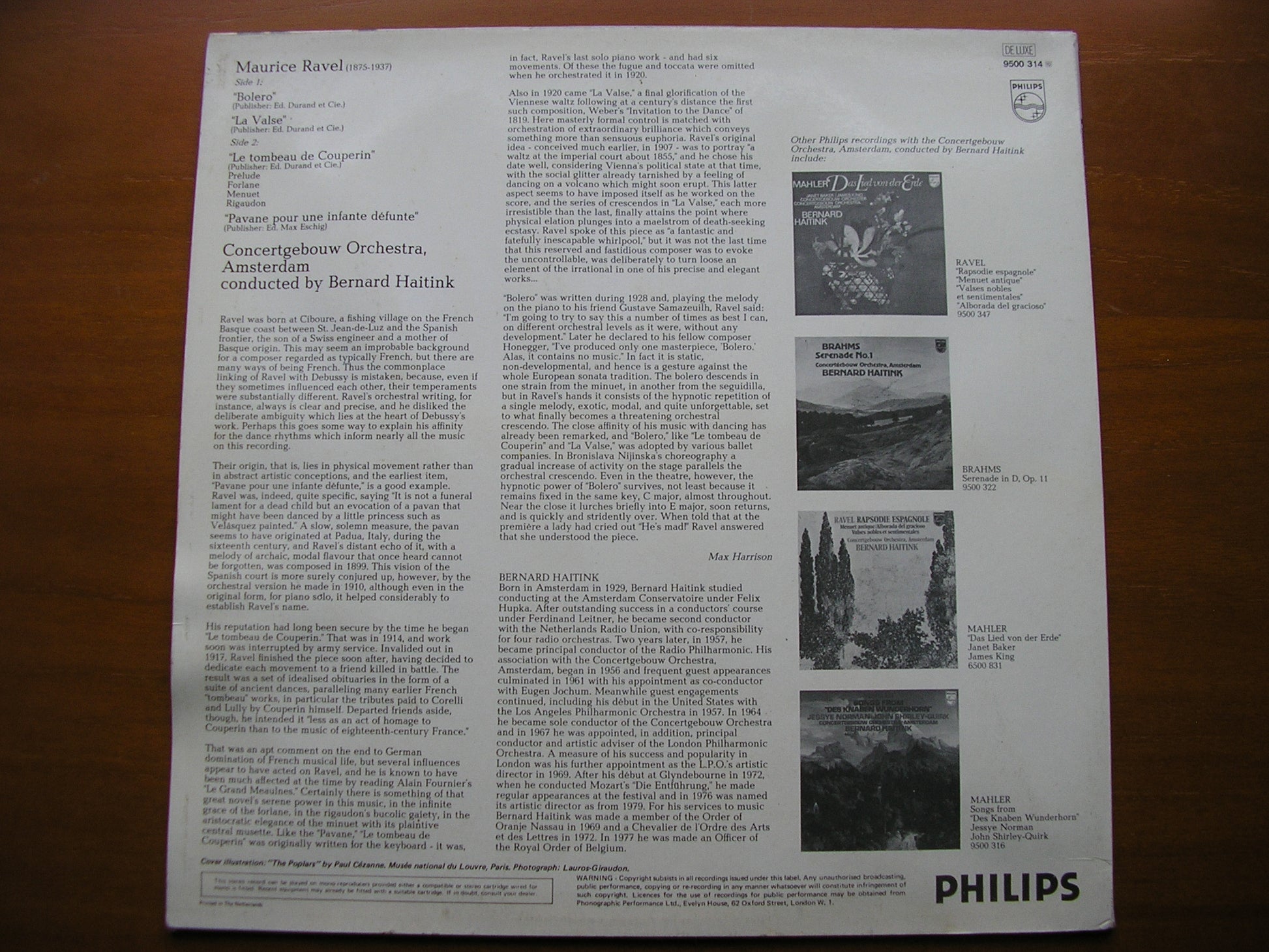 9500 314  RAVEL: ORCHESTRAL WORKS      BERNARD HAITINK / CONCERTGEBOUW ORCHESTRA AMSTERDAM
