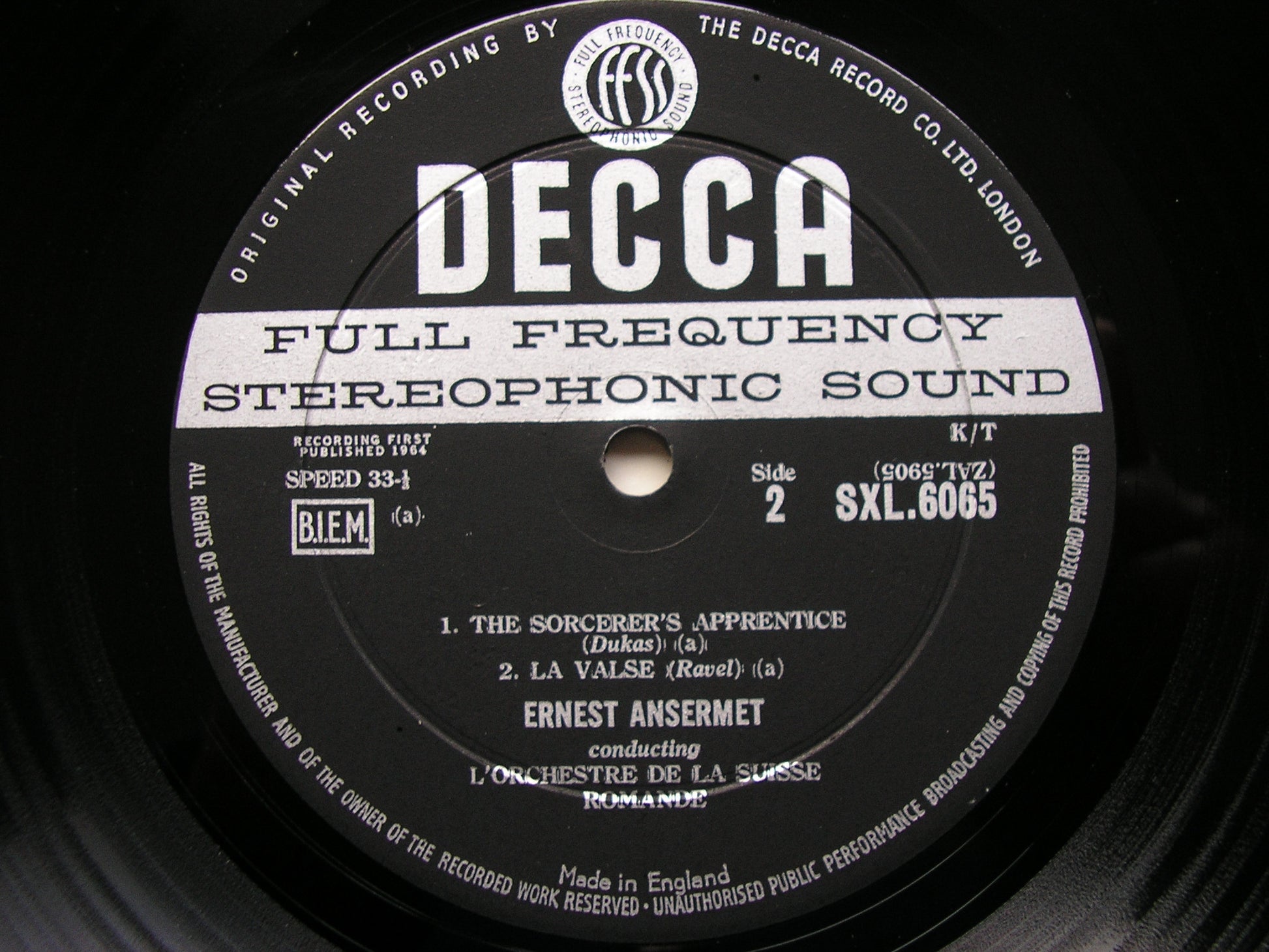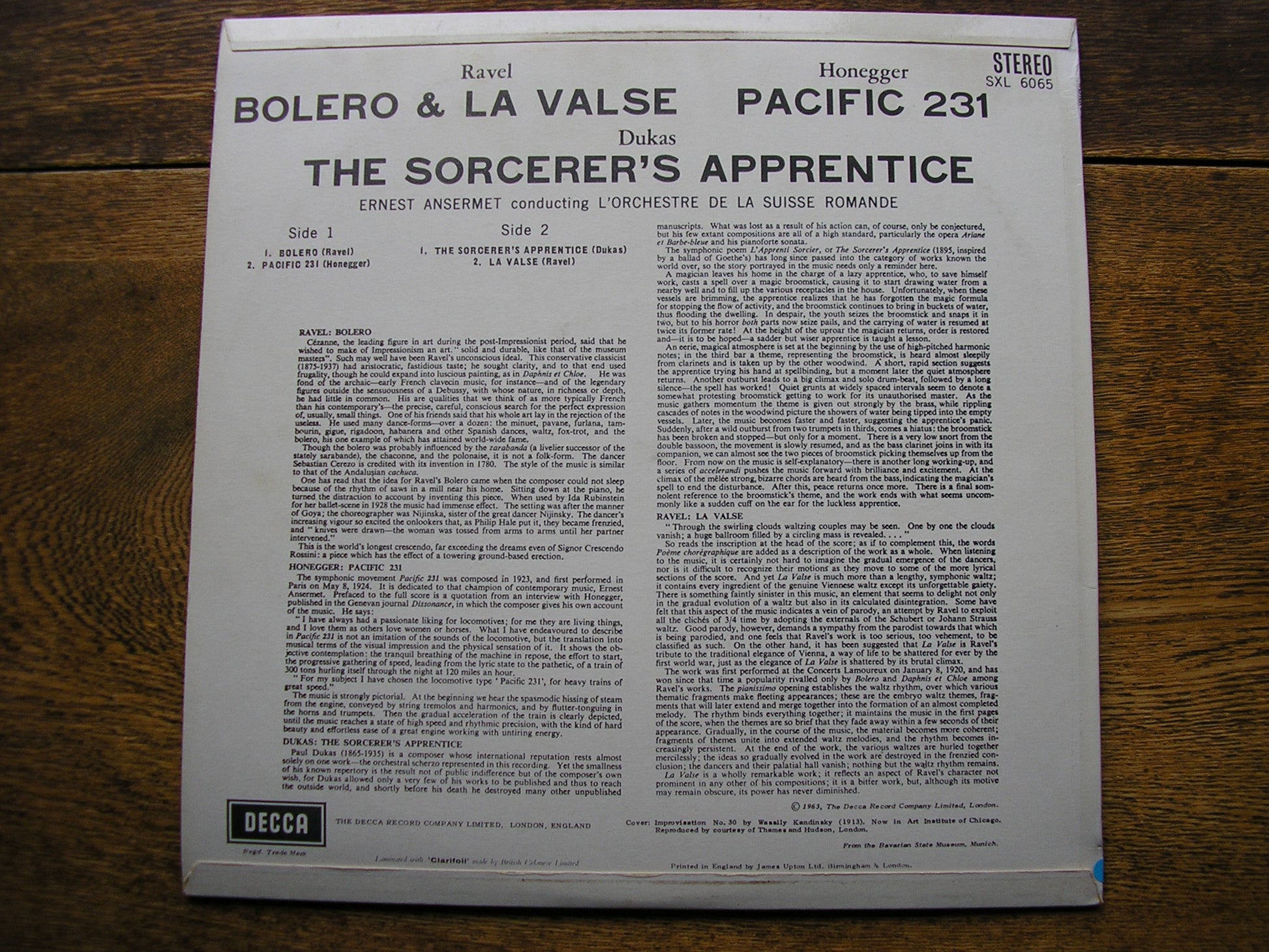 SXL 6065  RAVEL: BOLERO / HONEGGER: PACIFIC 231 / DUKAS: L'APPRENTI SORCIER    ERNEST ANSERMET / SUISSE ROMANDE ORCHESTRA