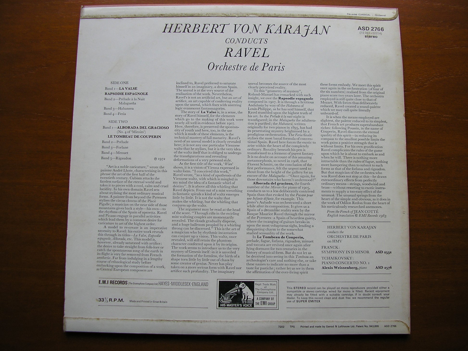 ASD 2766  RAVEL: ORCHESTRAL WORKS    HERBERT VON KARAJAN / ORCHESTRE de PARIS