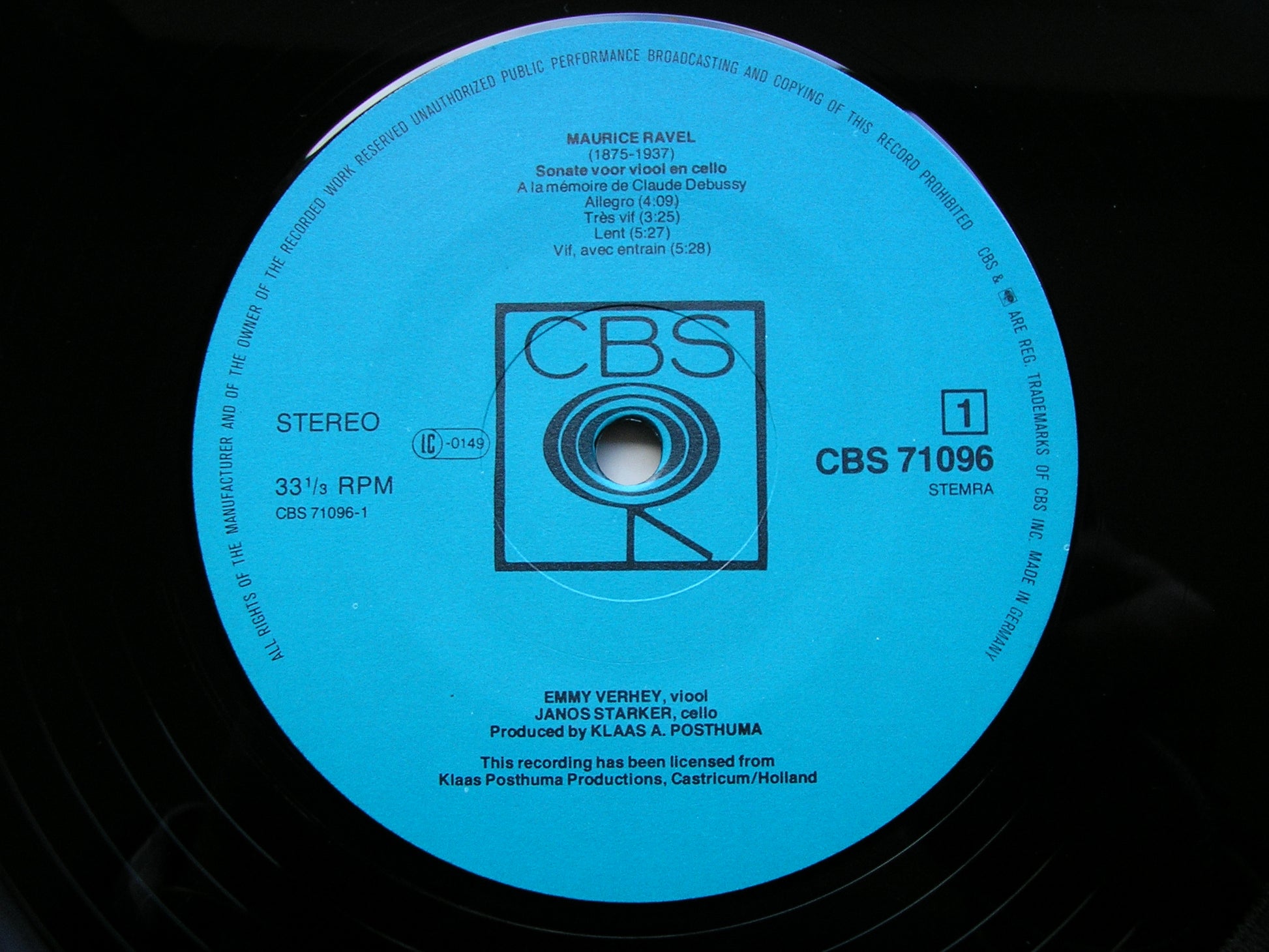 71096  RAVEL: SONATA FOR VIOLIN & CELLO / KODALY: DUO Op. 7     EMMY VERHEY / JANOS STARKER