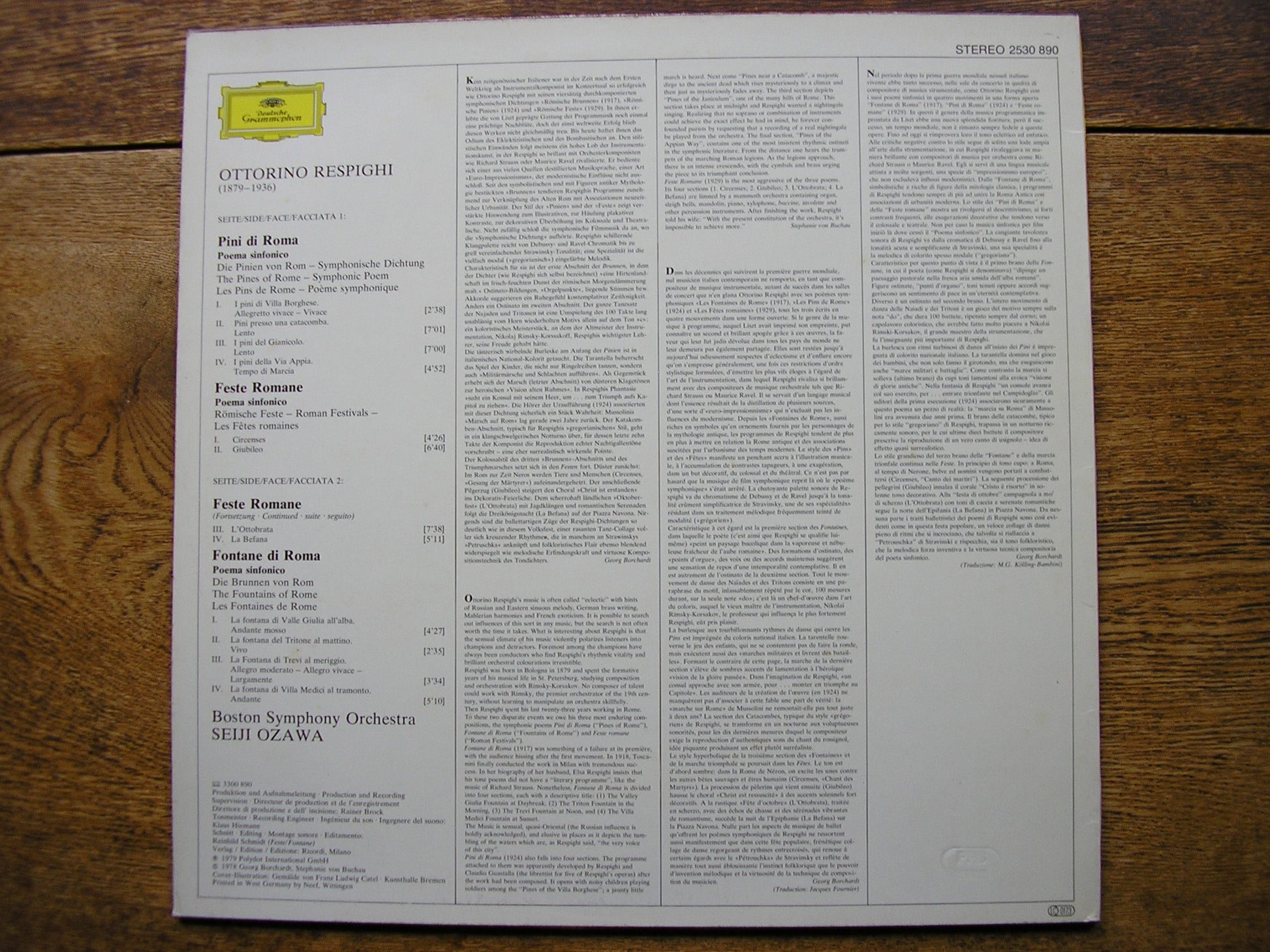 2530 890  RESPIGHI: PINES OF ROME / FOUNTAINS OF ROME / ROMAN FESTIVALS  SEIJI OZAWA / BOSTON SYMPHONY ORCHESTRA