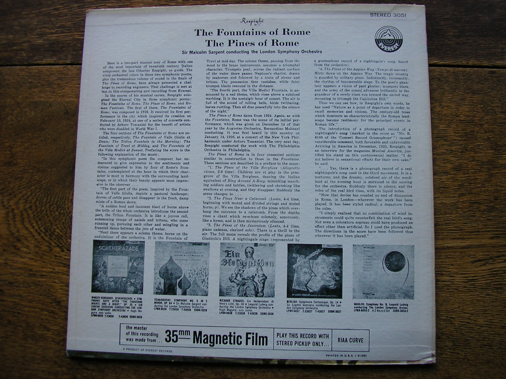 SDBR 3051  RESPIGHI: PINES OF ROME / FOUNTAINS OF ROME   SIR MALCOLM SARGENT / LONDON SYMPHONY ORCHESTRA