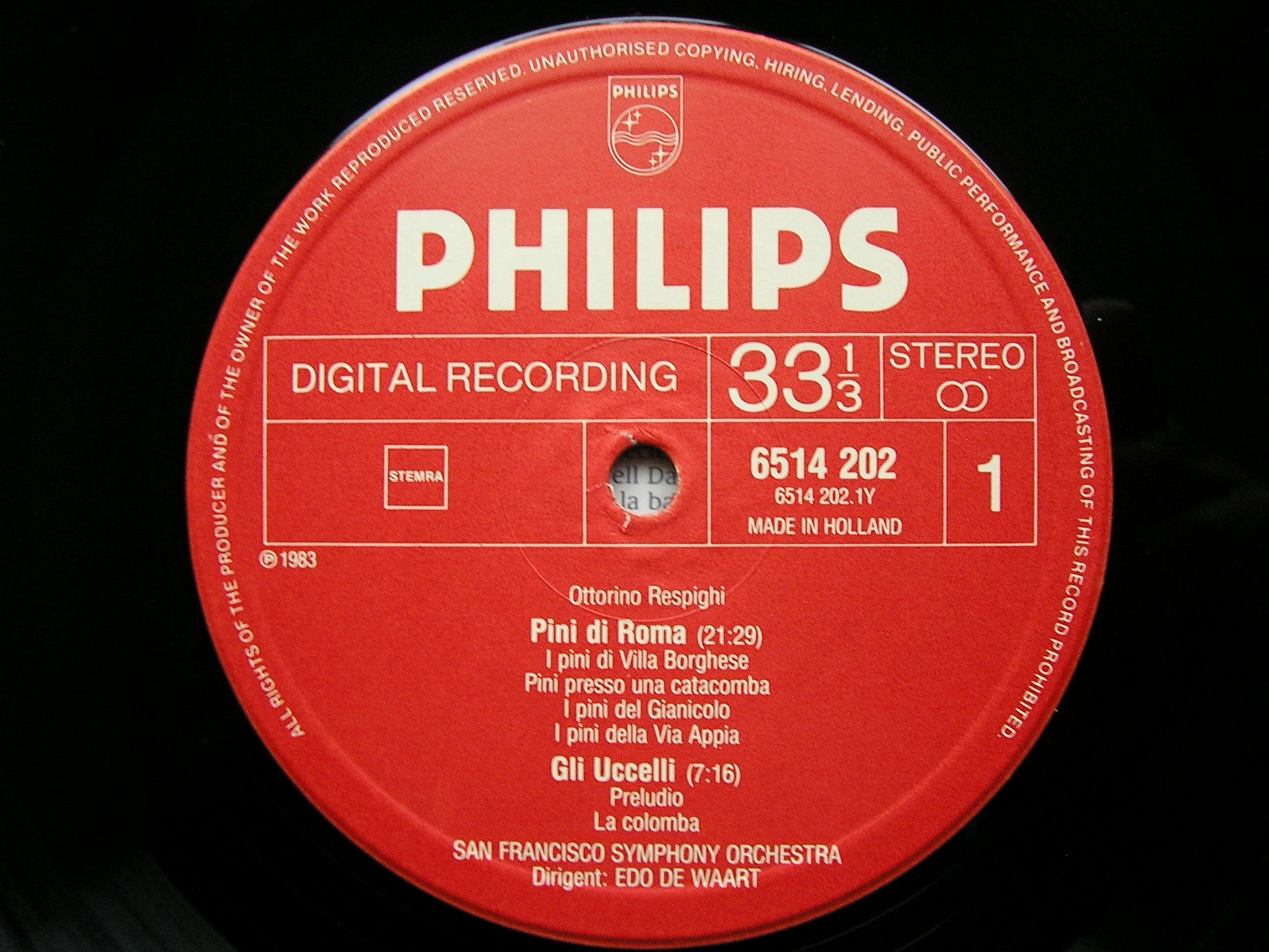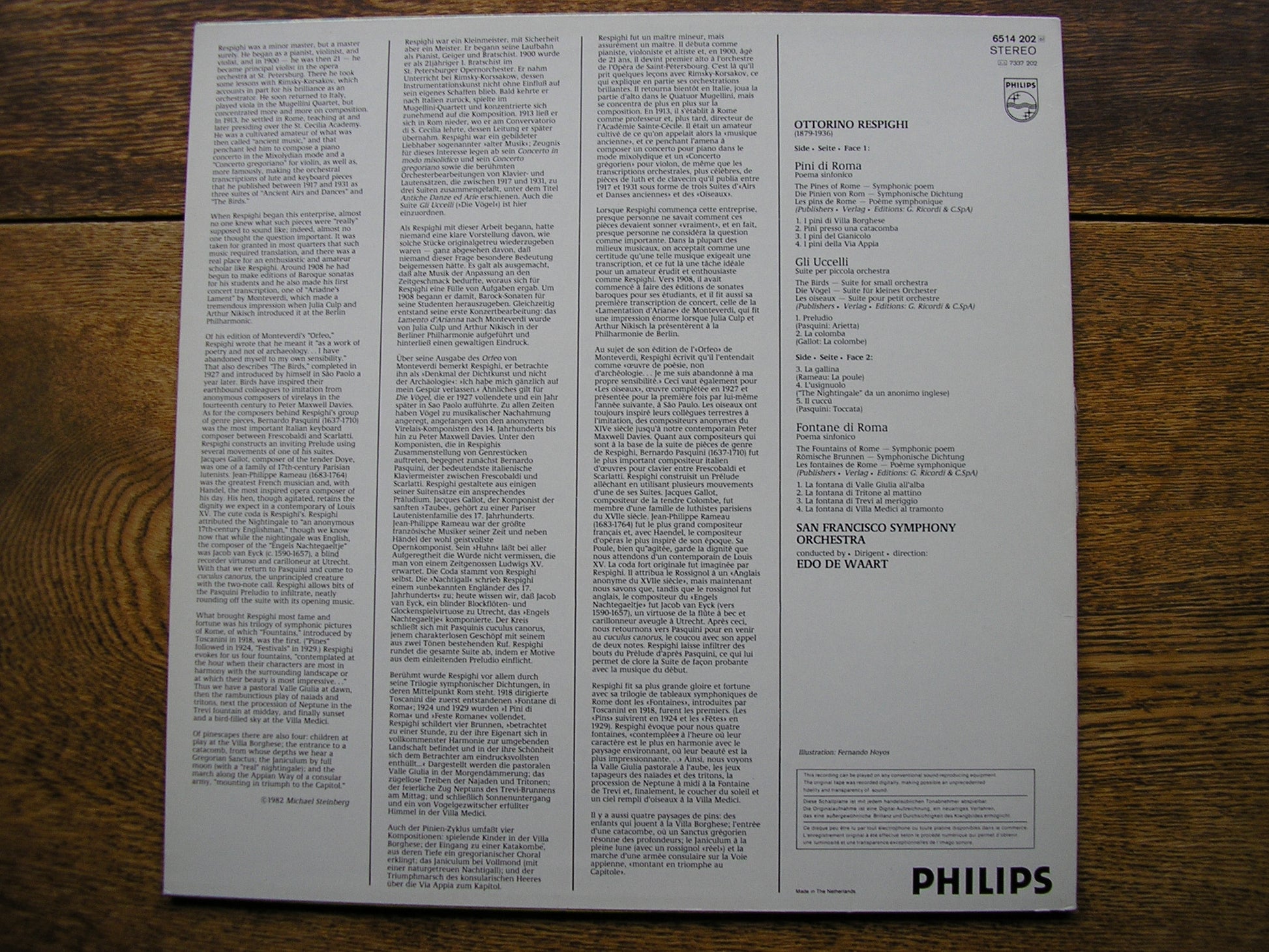 6514 202  RESPIGHI: PINES OF ROME / FOUNTAINS OF ROME / THE BIRDS    EDO DE WAART / SAN FRANCISCO SYMPHONY ORCHESTRA
