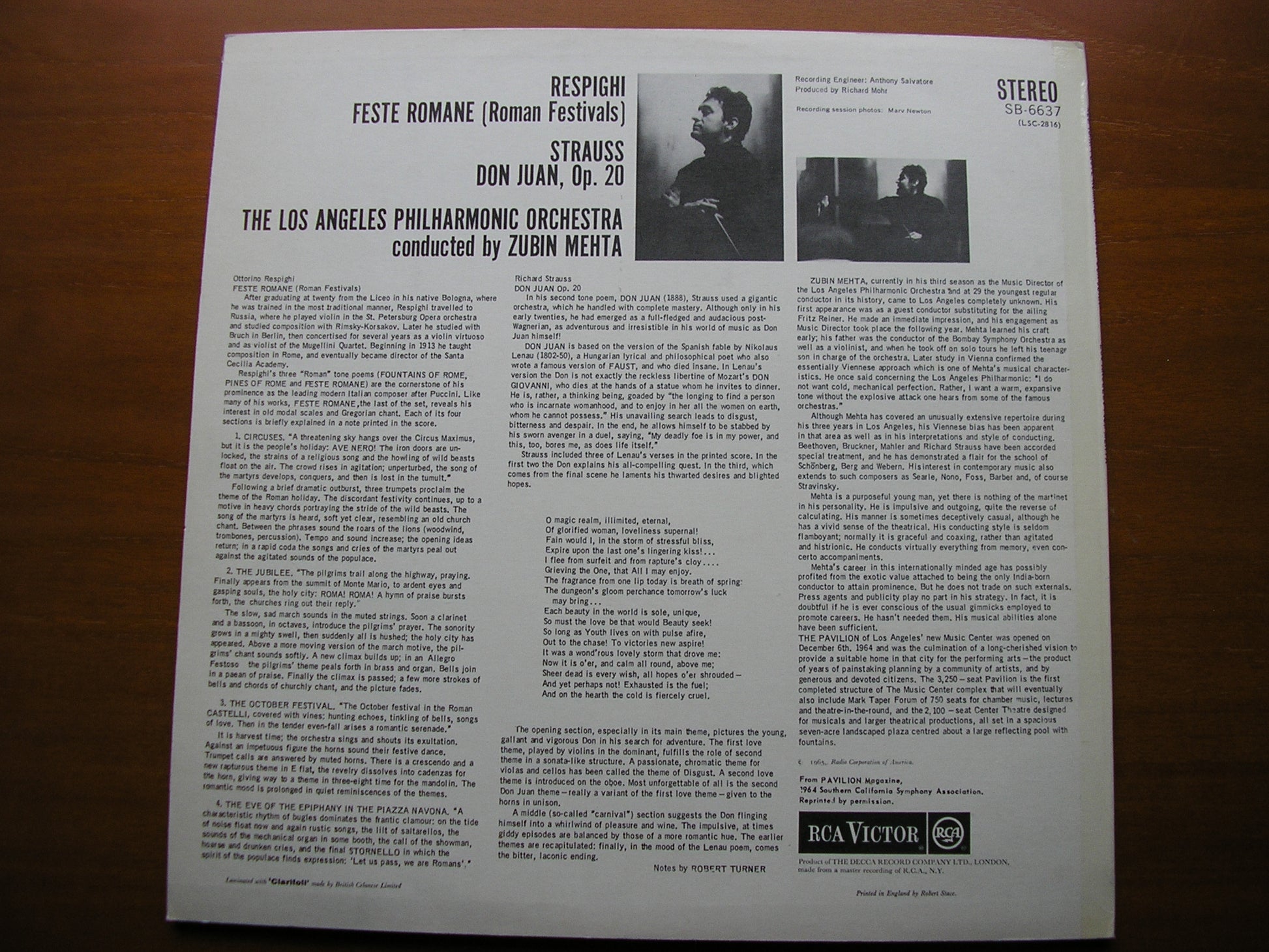 SB 6637  RESPIGHI: ROMAN FESTIVALS / STRAUSS: DON JUAN      ZUBIN MEHTA / LOS ANGELES PHILHARMONIC ORCHESTRA