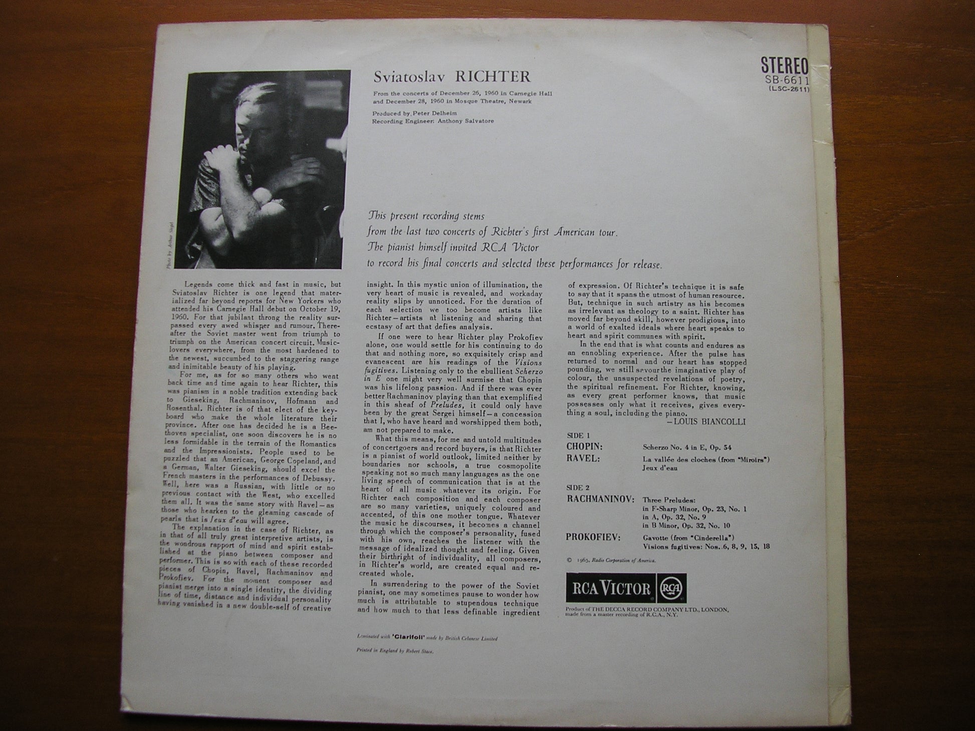 SB 6611  RACHMANINOV / RAVEL / PROKOFIEV / CHOPIN: PIANO WORKS      SVIATOSLAV RICHTER