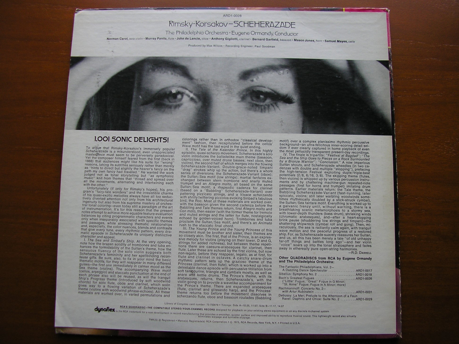ARD1-0028  RIMSKY - KORSAKOV: SCHEHERAZADE   EUGENE ORMANDY / PHILADELPHIA ORCHESTRA