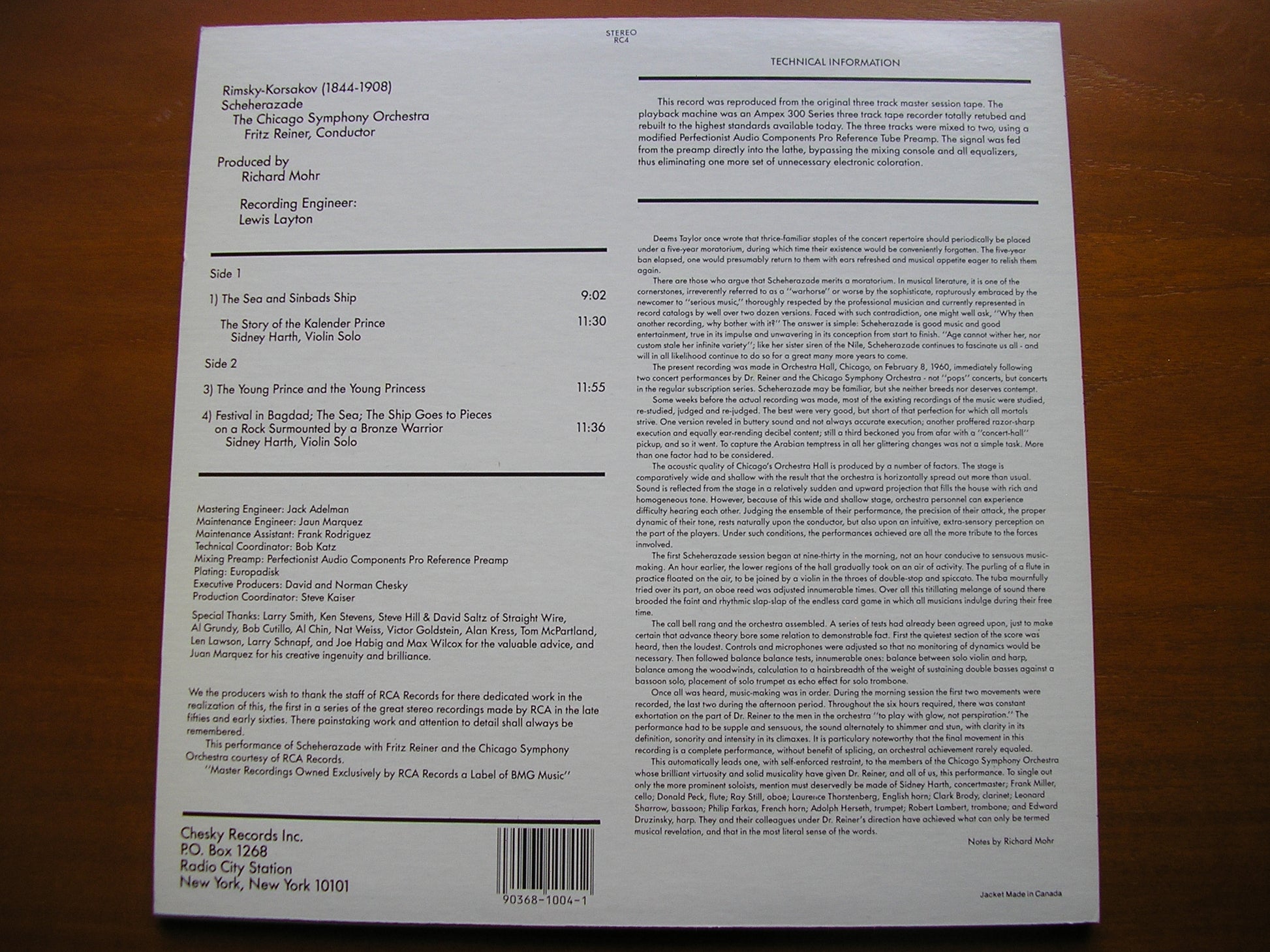 RC4  RIMSKY-KORSAKOV: SCHEHERAZADE      FRITZ REINER / CHICAGO SYMPHONY ORCHESTRA