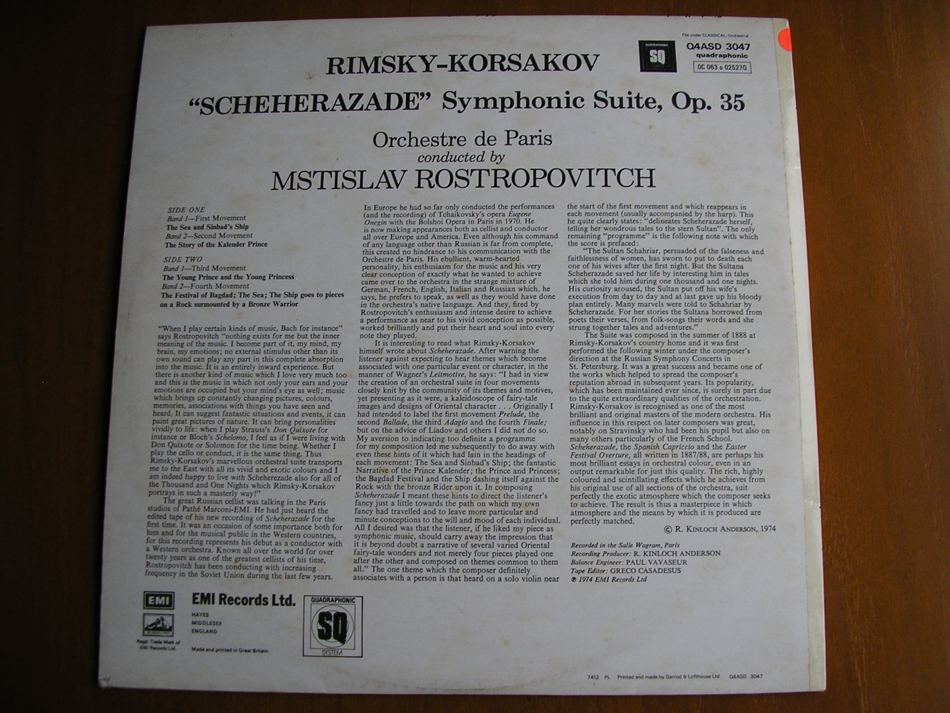 RIMSKY-KORSAKOV: SCHEHERAZADE ROSTROPOVICH / ORCHESTRA DE PARIS test pressing Q4ASD 3047