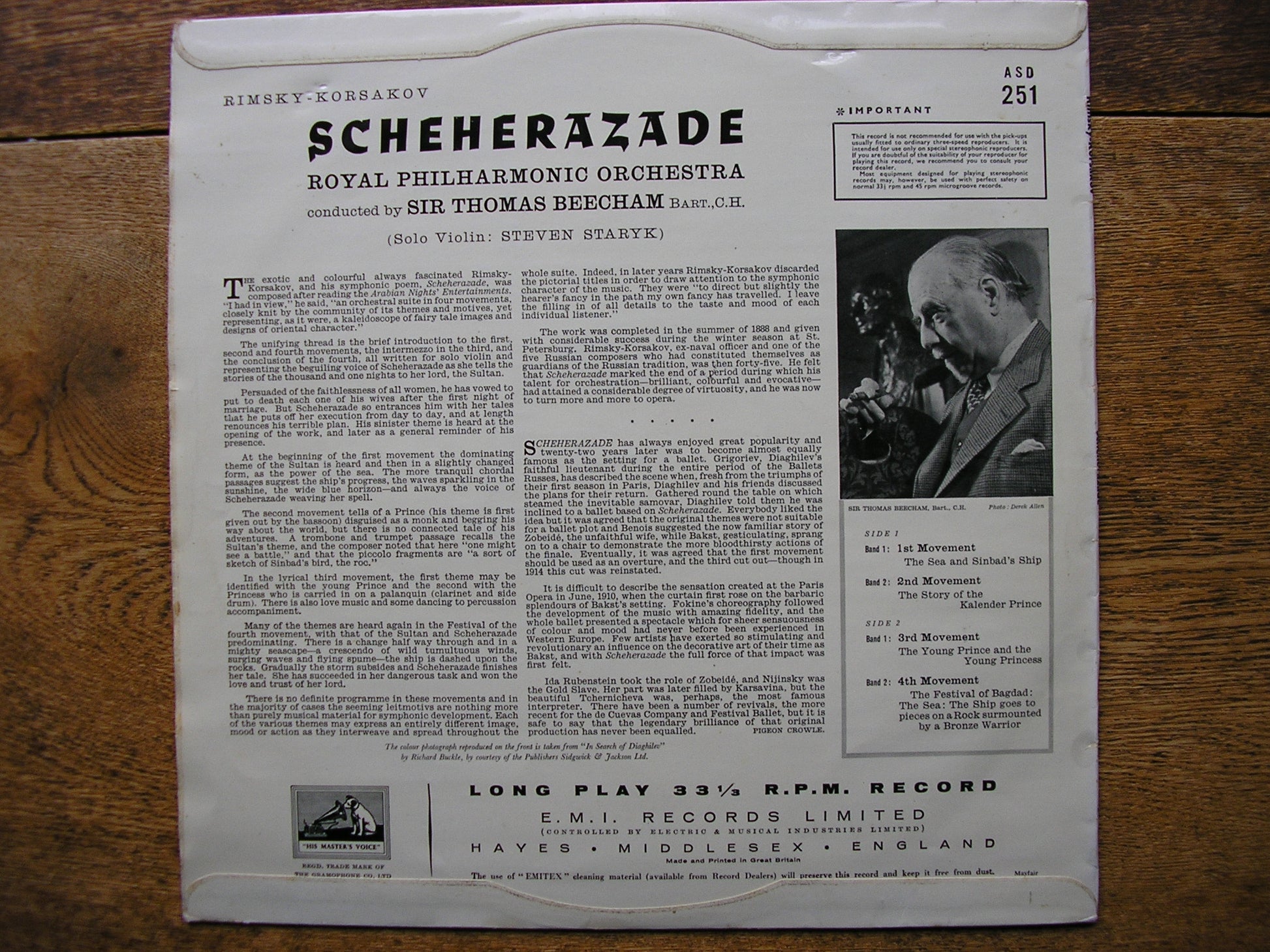 ASD 251 RIMSKY - KORSAKOV: SCHEHERAZADE BEECHAM / ROYAL PHILHARMONIC ORCHESTRA