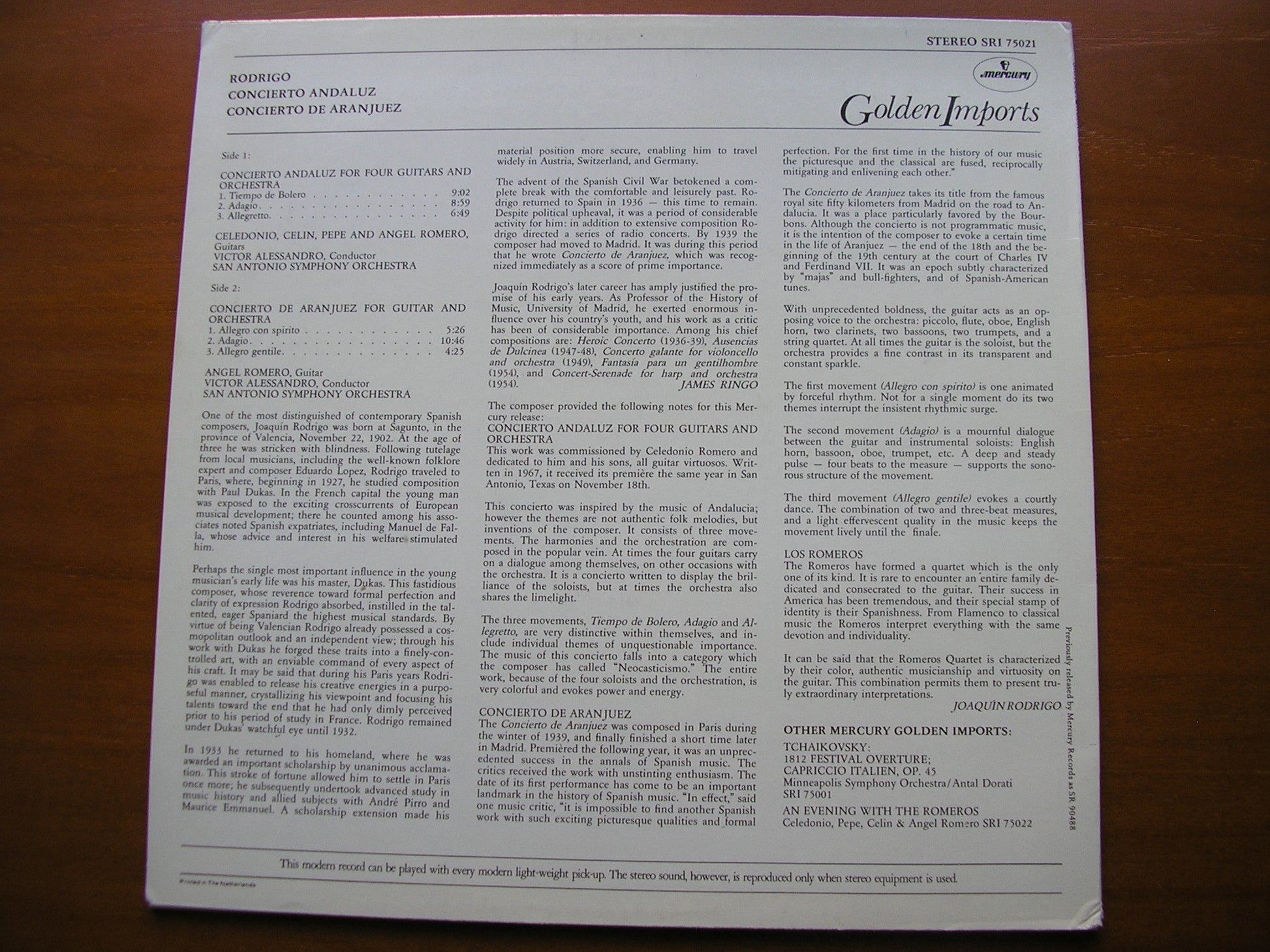 SRI 75021  RODRIGO: CONCIERTO DE ARANJUEZ* / CONCERTO ANDALUZ     THE ROMEROS / SAN ANTONIO SYMPHONY ORCHESTRA / VICTOR ALESSANDRO