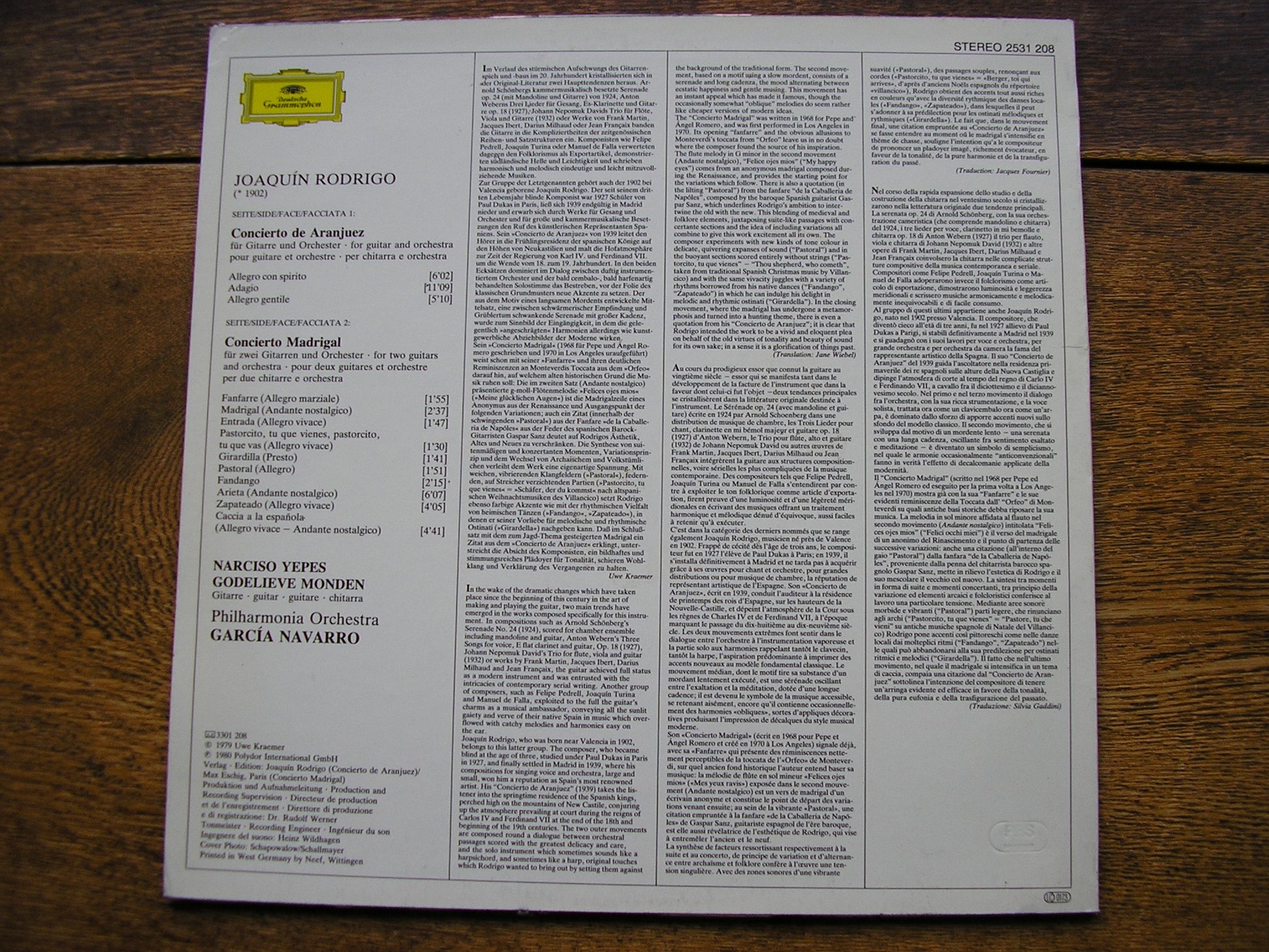 2531 208  RODRIGO: CONCIERTO DE ARANJUEZ / CONCIERTO MADRIGAL FOR TWO GUITARS   NARCISO YEPES / GODELIEVE MONDEN / PHILHARMONIA ORCHESTRA / GARCIA NAVARRO