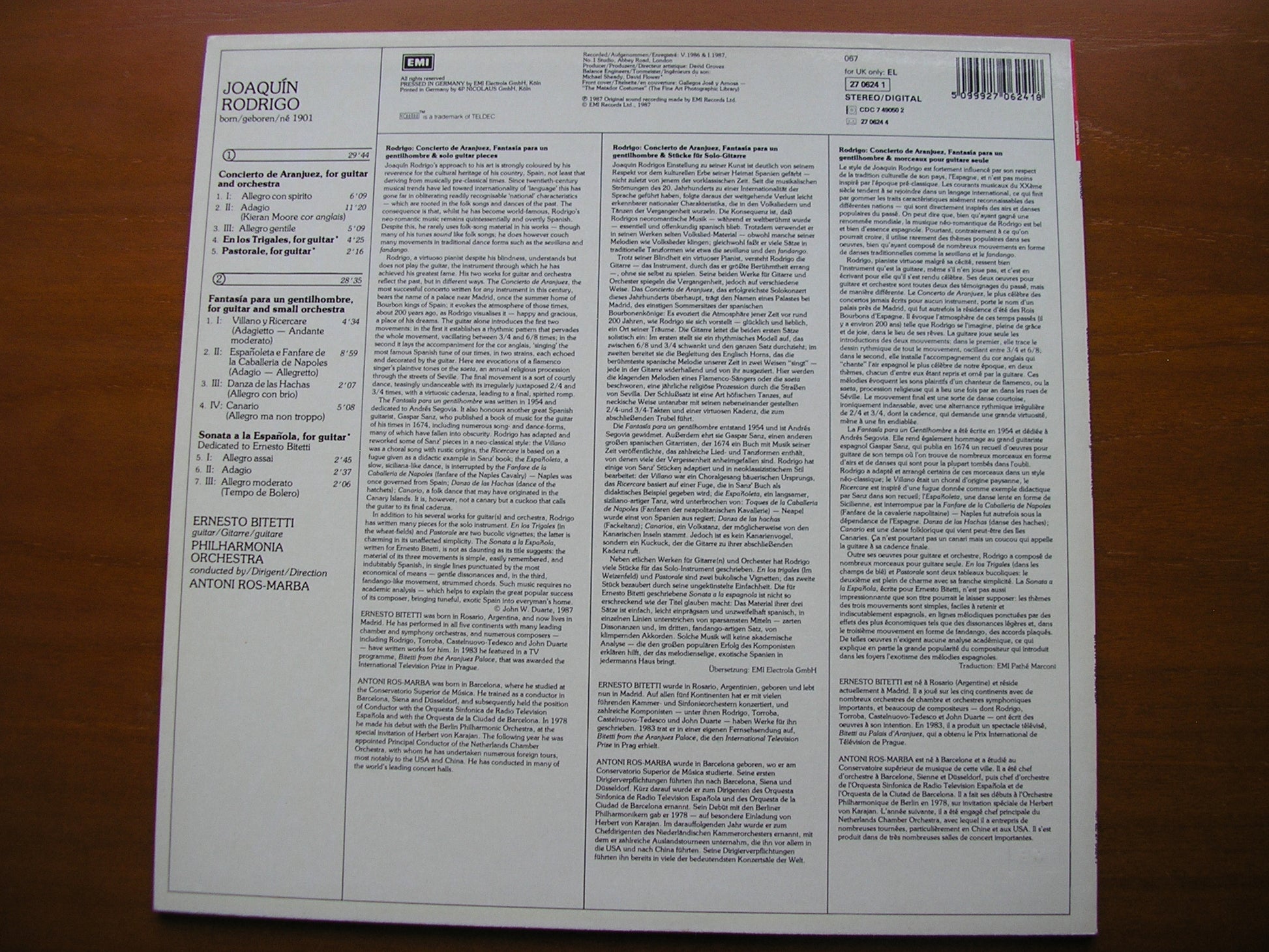 27 0624  RODRIGO: CONCIERTO DE ARANJUEZ / FANTASIA / SONATA    ERNESTO BITETTI / PHILHARMONIA ORCHESTRA / ANTONI ROS-MARBA