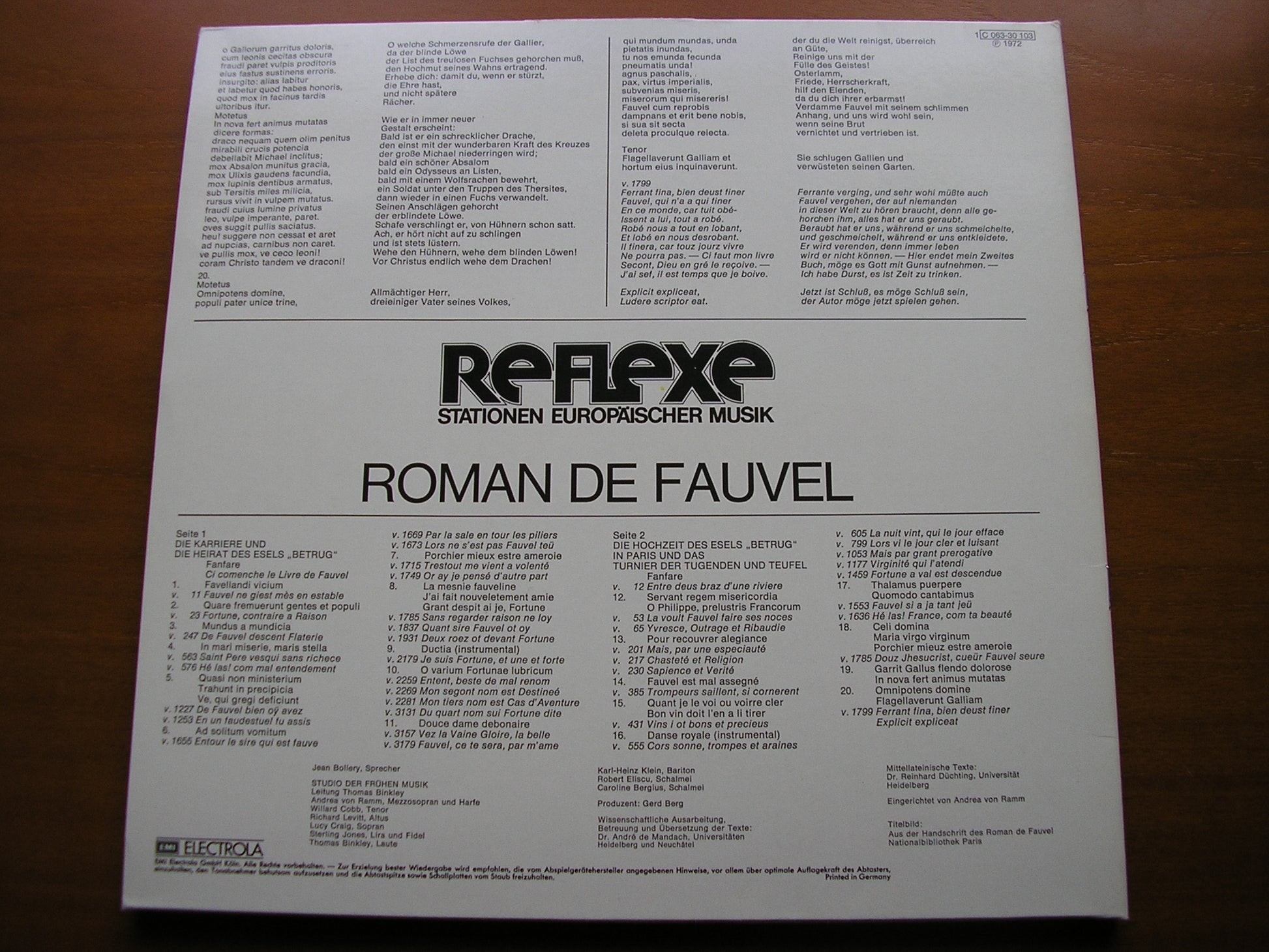 063 30 103  ROMAN DE FAUVEL       JEAN BOLLERY / STUDIO OF EARLY MUSIC / THOMAS BINKLEY