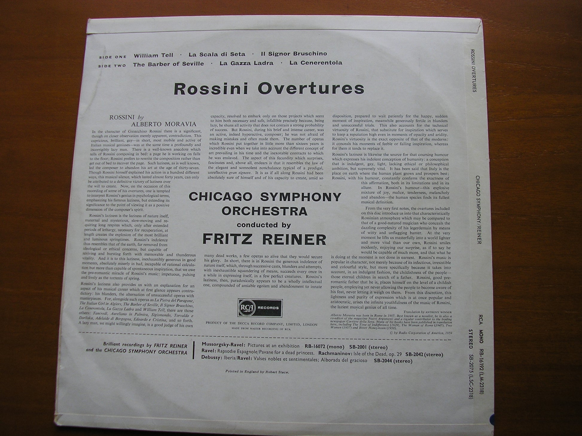 SB 2075  ROSSINI: OVERTURES William Tell / The Barber of Seville / Il Signor Bruschino / La Gazza Ladra / La Scala di Seta / La Cenerentola    FRITZ REINER / CHICAGO SYMPHONY ORCHESTRA