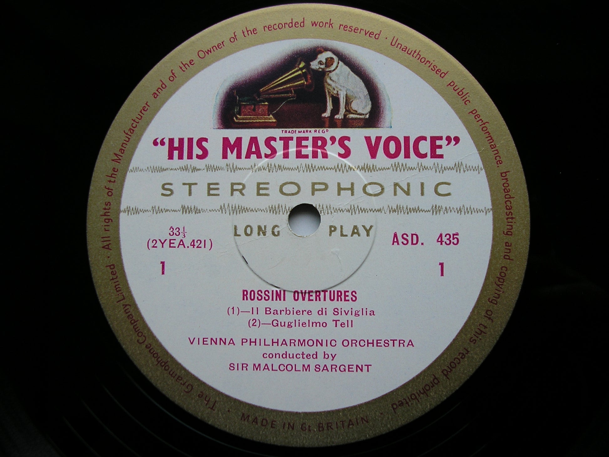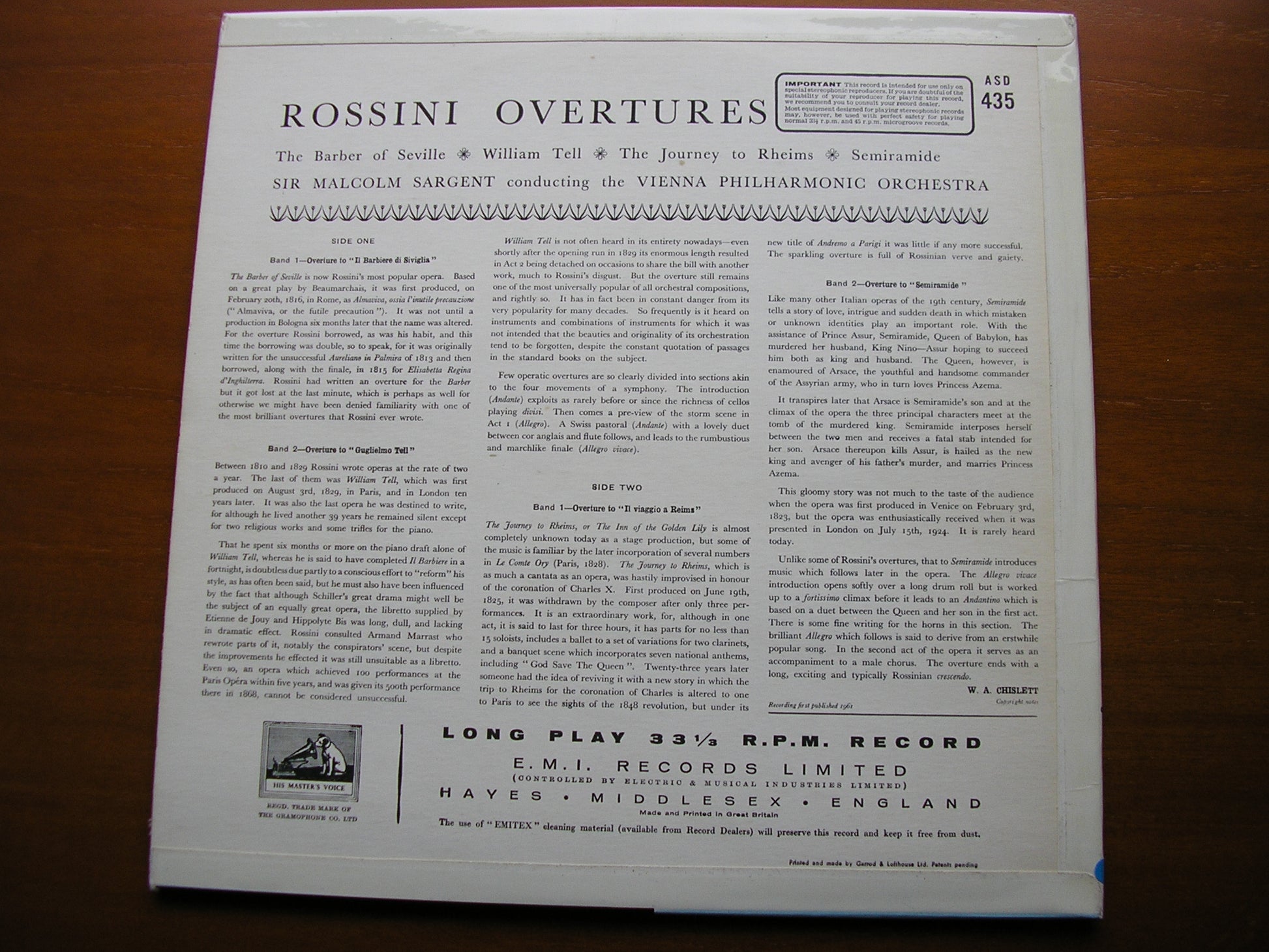 ASD 435  ROSSINI: OVERTURES William Tell / Semiramide / The Barber of Seville / The Journey to Rheims      SIR MALCOLM SARGENT / VIENNA PHILHARMONIC ORCHESTRA