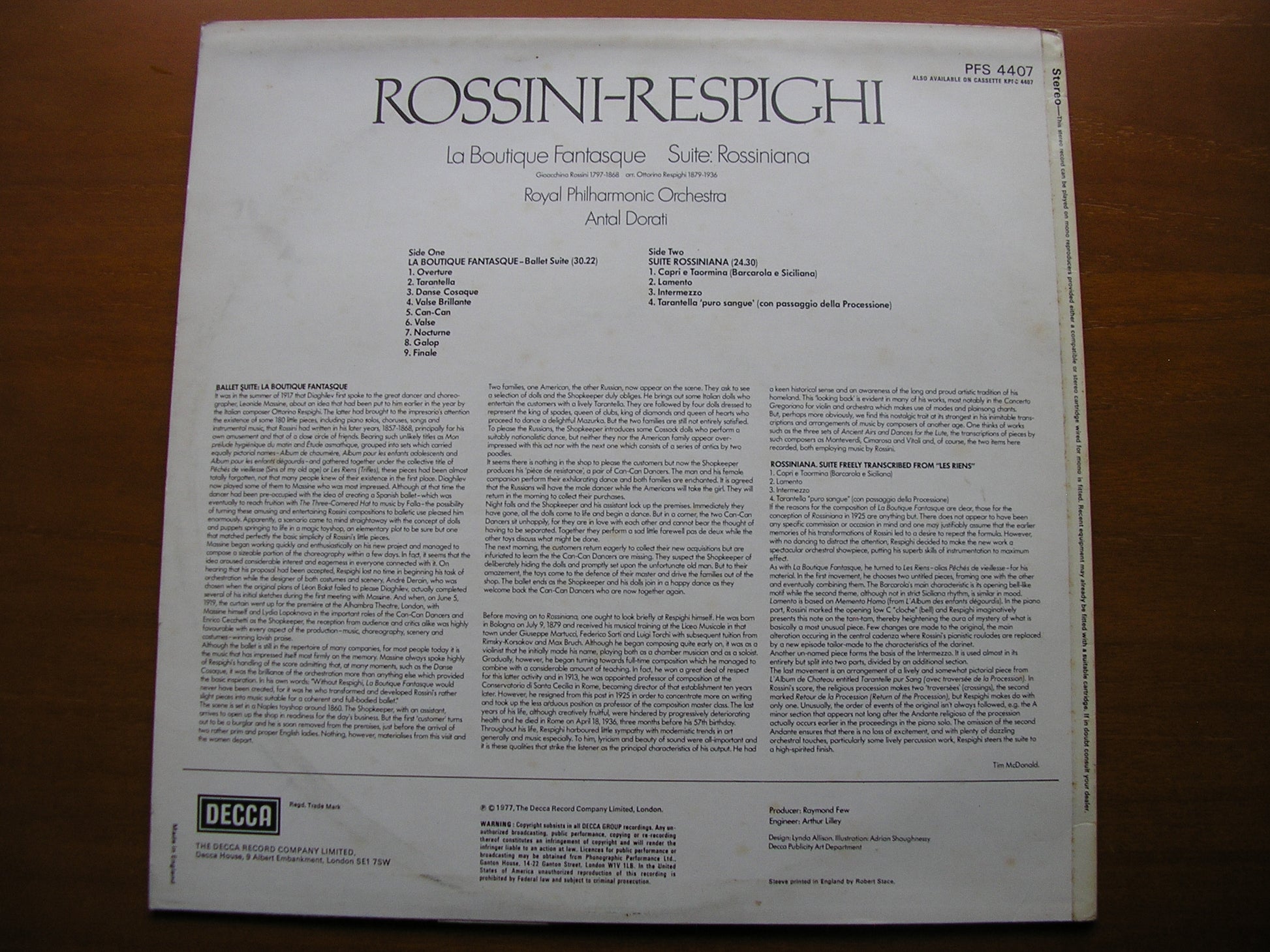PFS 4407  ROSSINI - RESPIGHI: LA BOUTIQUE FANTASQUE / ROSSINIANA        ANTAL DORATI / ROYAL PHILHARMONIC ORCHESTRA