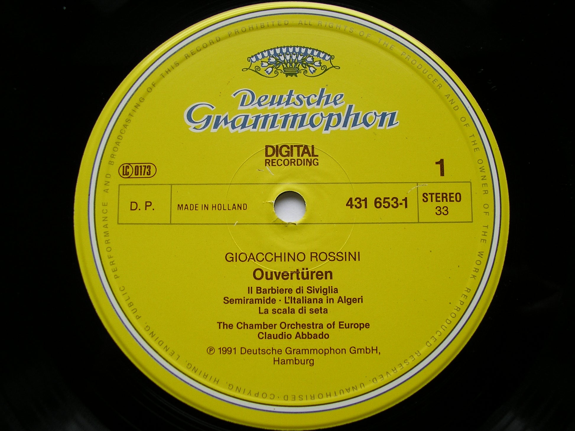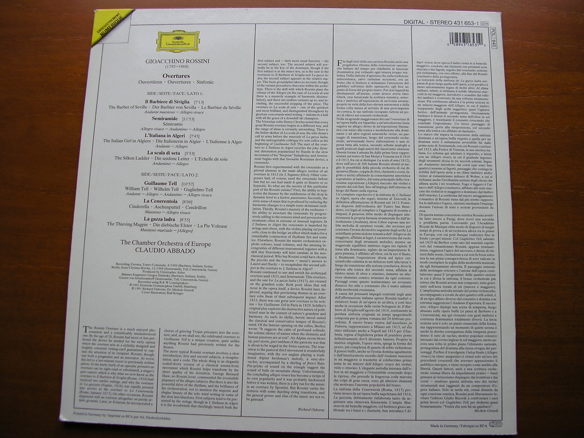 431 653  ROSSINI: OVERTURES William Tell / Semiramide / La Gazza Ladra / La Scala di Seta / La Cenerentola / L'Italiana in Algeri / The Barber of Seville     CLAUDIO ABBADO / THE CHAMBER ORCHESTRA OF EUROPE