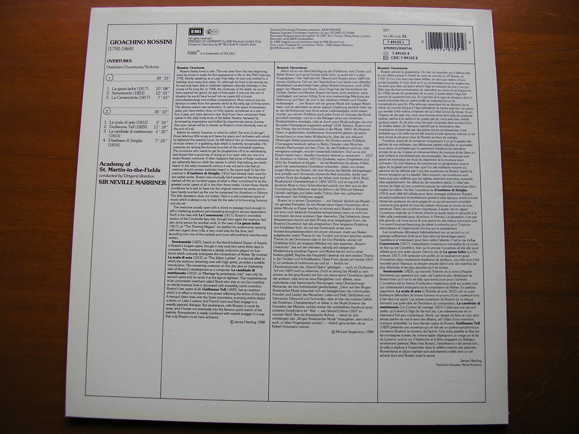 7 49155  ROSSINI: OVERTURES William Tell / La Gazza Ladra / La Scala di Seta / Semiramide / La Cenerentola / The Barber of Seville / La Cambiale di Matrimonio   NEVILLE MARRINER / ACADEMY OF St MARTIN IN THE FIELDS