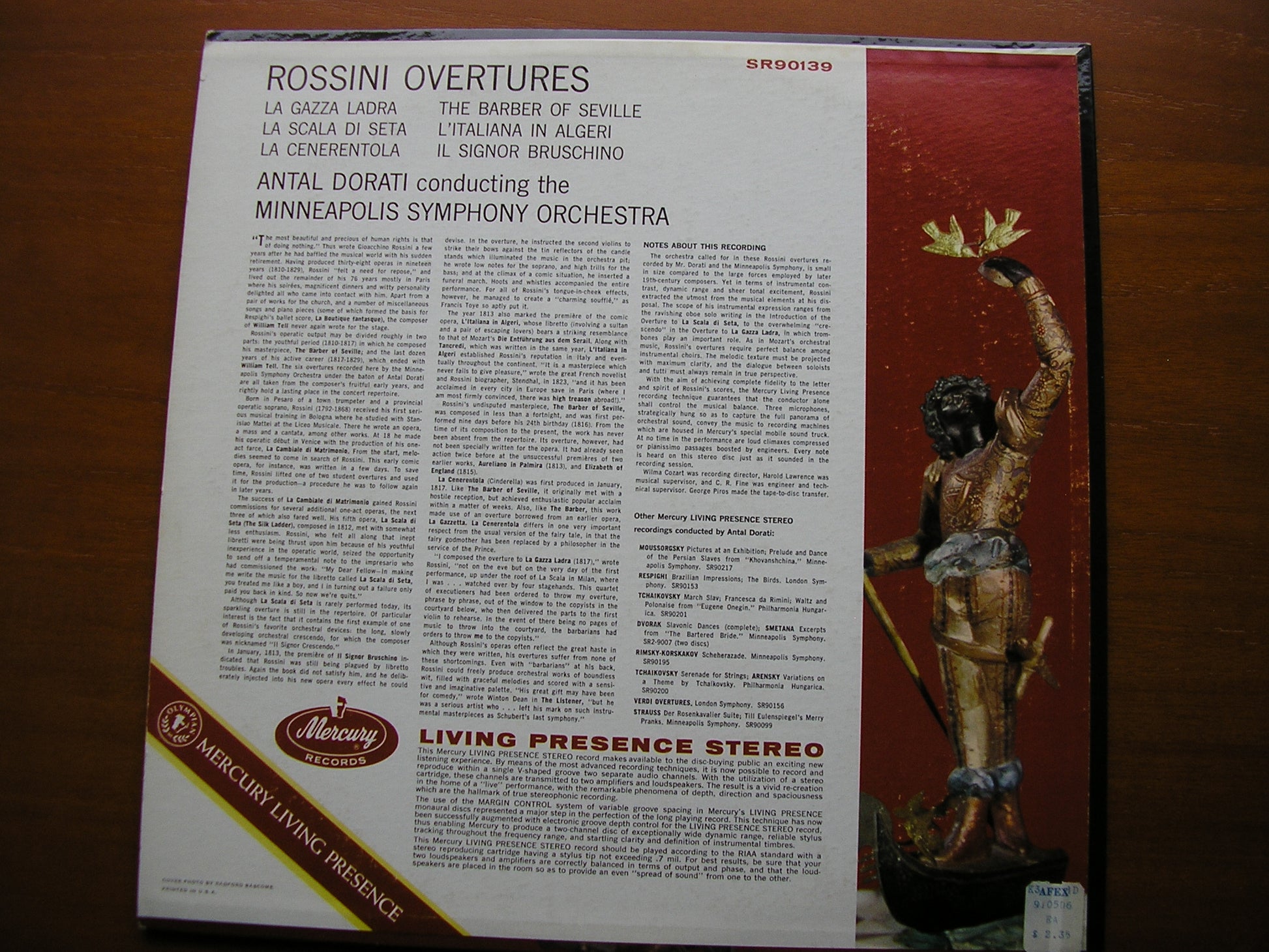 ROSSINI: SIX OVERTURES ANTAL DORATI / MINNEAPOLIS SYMPHONY ORCHESTRA SR 90139