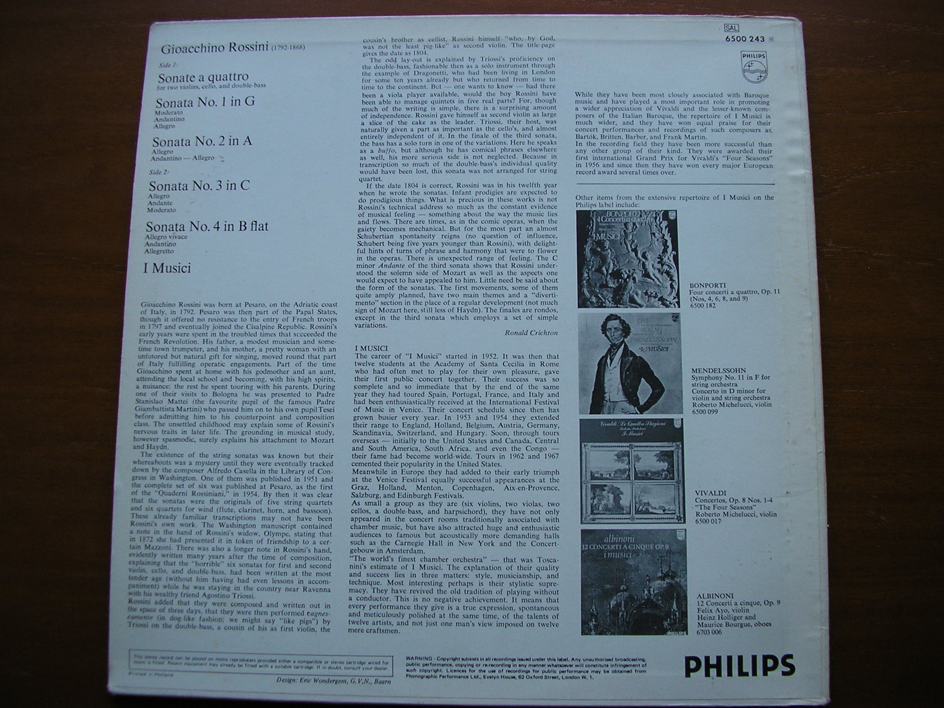 6500 243  ROSSINI: STRING SONATAS Nos. 1 - 4     I MUSICI