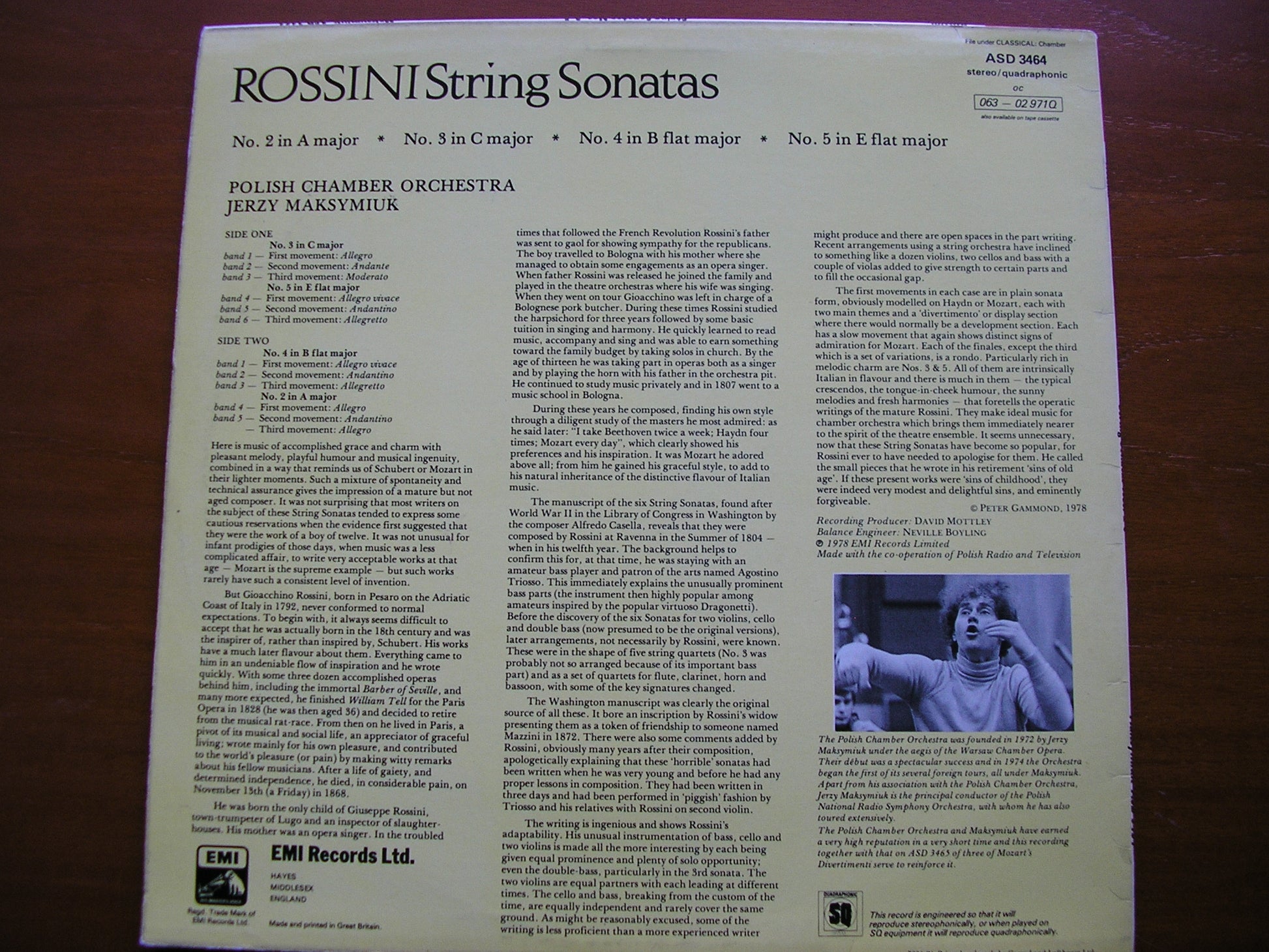ASD 3464  ROSSINI: STRING SONATAS Nos. 2 - 5    JERZY MAKSYMIUK / POLISH CHAMBER ORCHESTRA