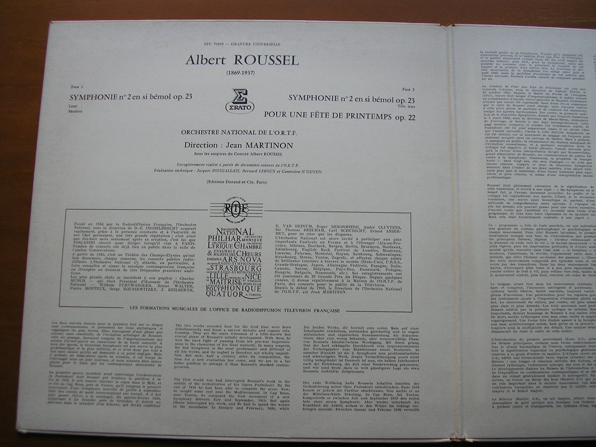 STU 70569  ROUSSEL: SYMPHONY No. 2 / POUR UNE FETE DE PRINTEMPS      JEAN MARTINON / FRENCH NATIONAL RADIO ORCHESTRA