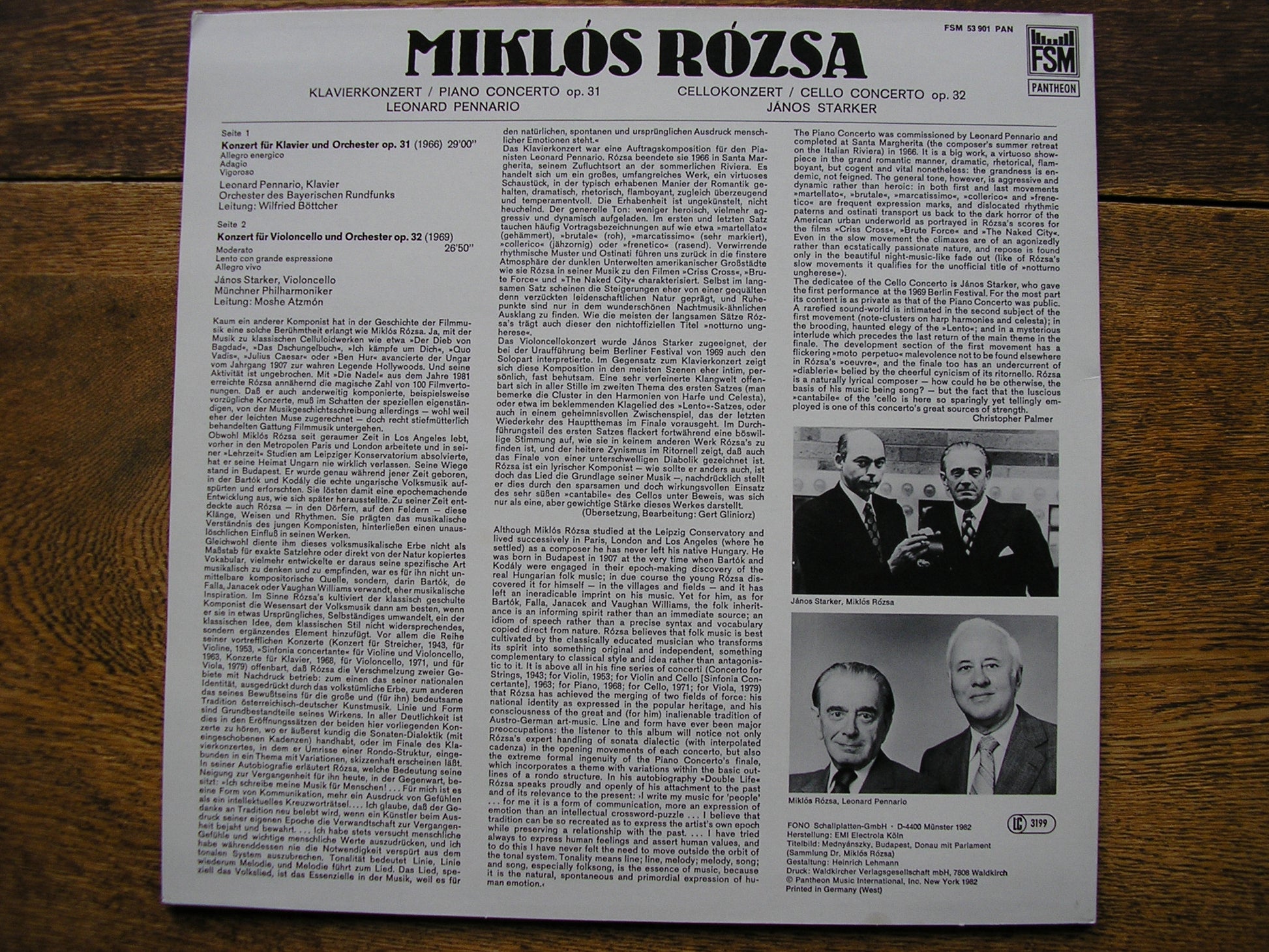 ROZSA: CELLO CONCERTO / PIANO CONCERTO STARKER / PENNARIO / ATZMON / BOTTCHER FSM 53 901 PAN
