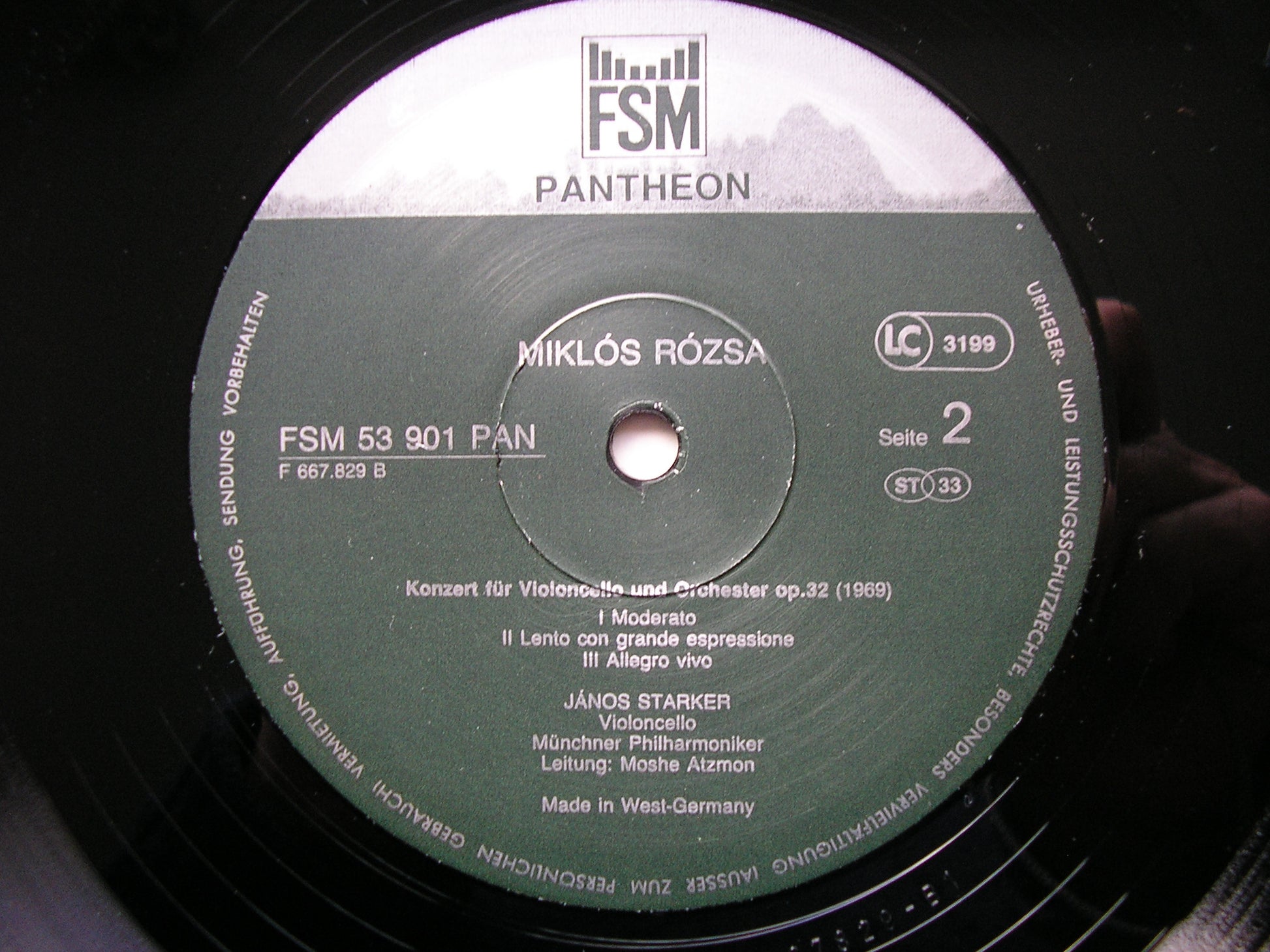 FSM 53 901 PAN  ROZSA:  CELLO CONCERTO Op. 32  JANOS STARKER / MOSHE ATZMON / MUNICH PHILHARMONIC ORCHESTRA