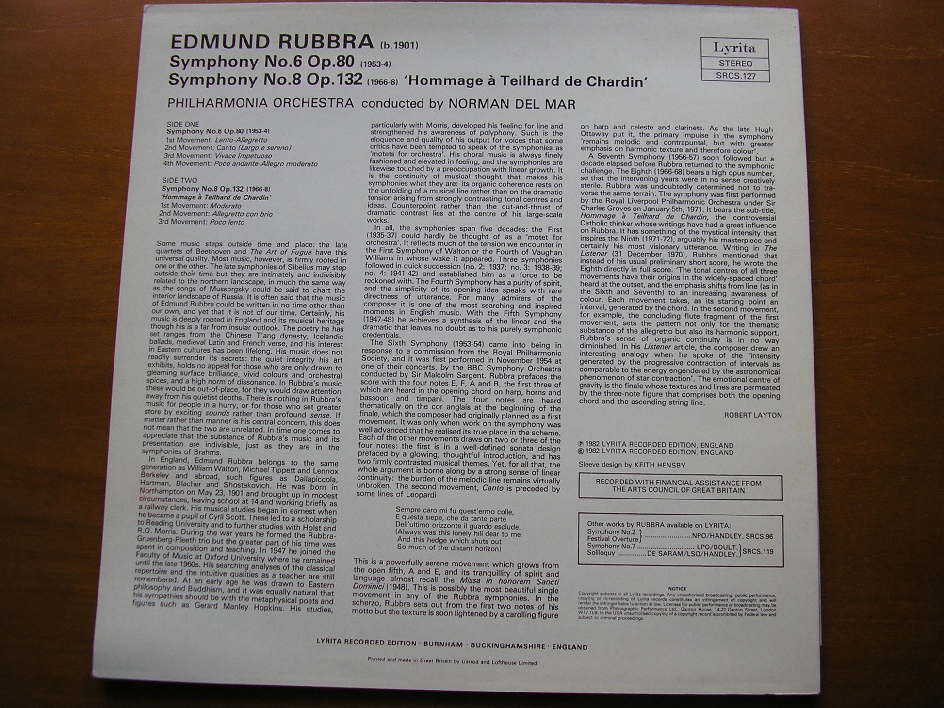 RUBBRA: SYMPHONIES Nos. 6 & 8 PHILHARMONIA / NORMAN DEL MAR SRCS 127