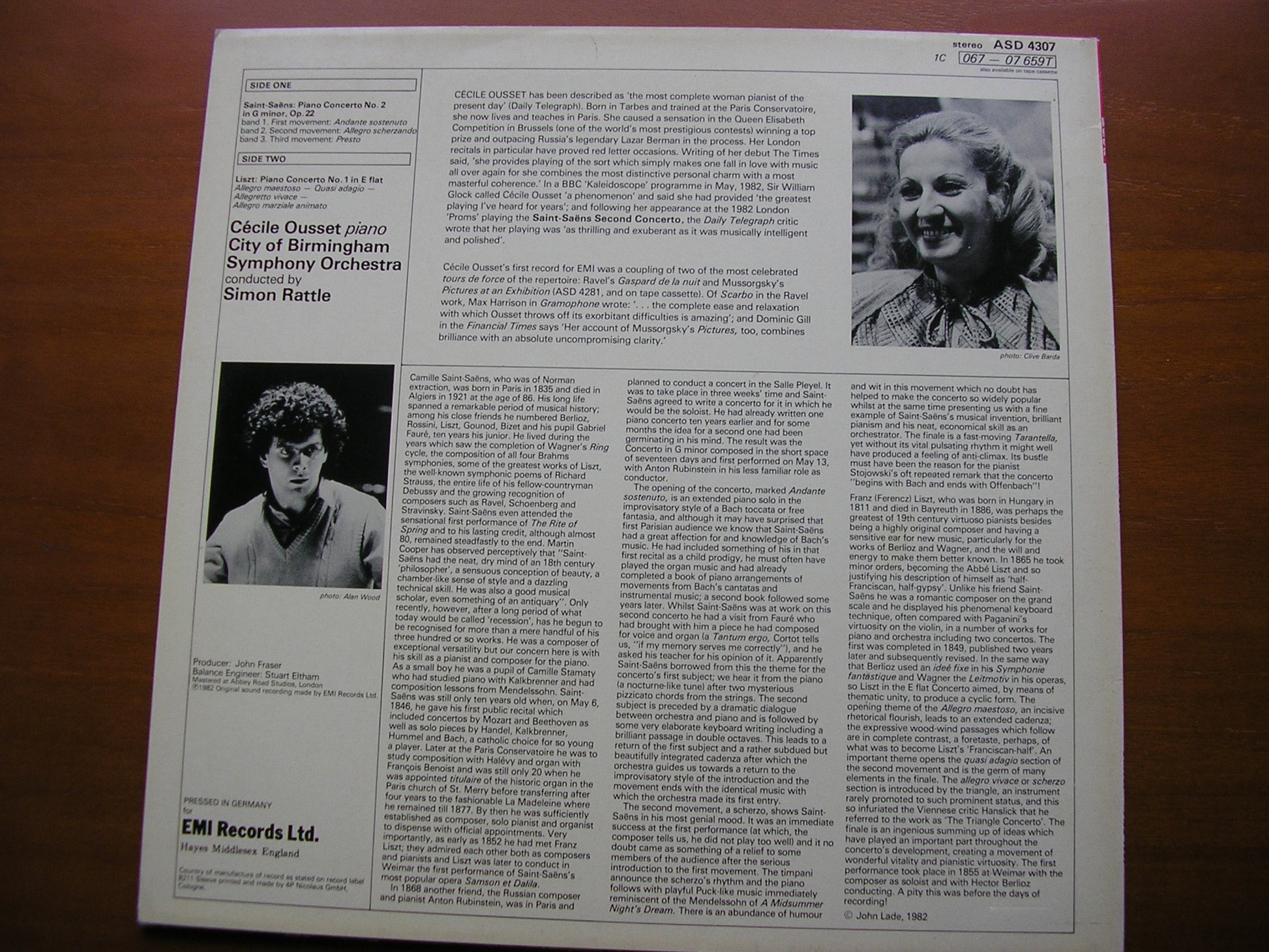 ASD 4307  SAINT-SAENS: PIANO CONCERTO No. 2 / LISZT: PIANO CONCERTO No. 1   CECILE OUSSET / CITY OF BIRMINGHAM SYMPHONY ORCHESTRA / SIMON RATTLE