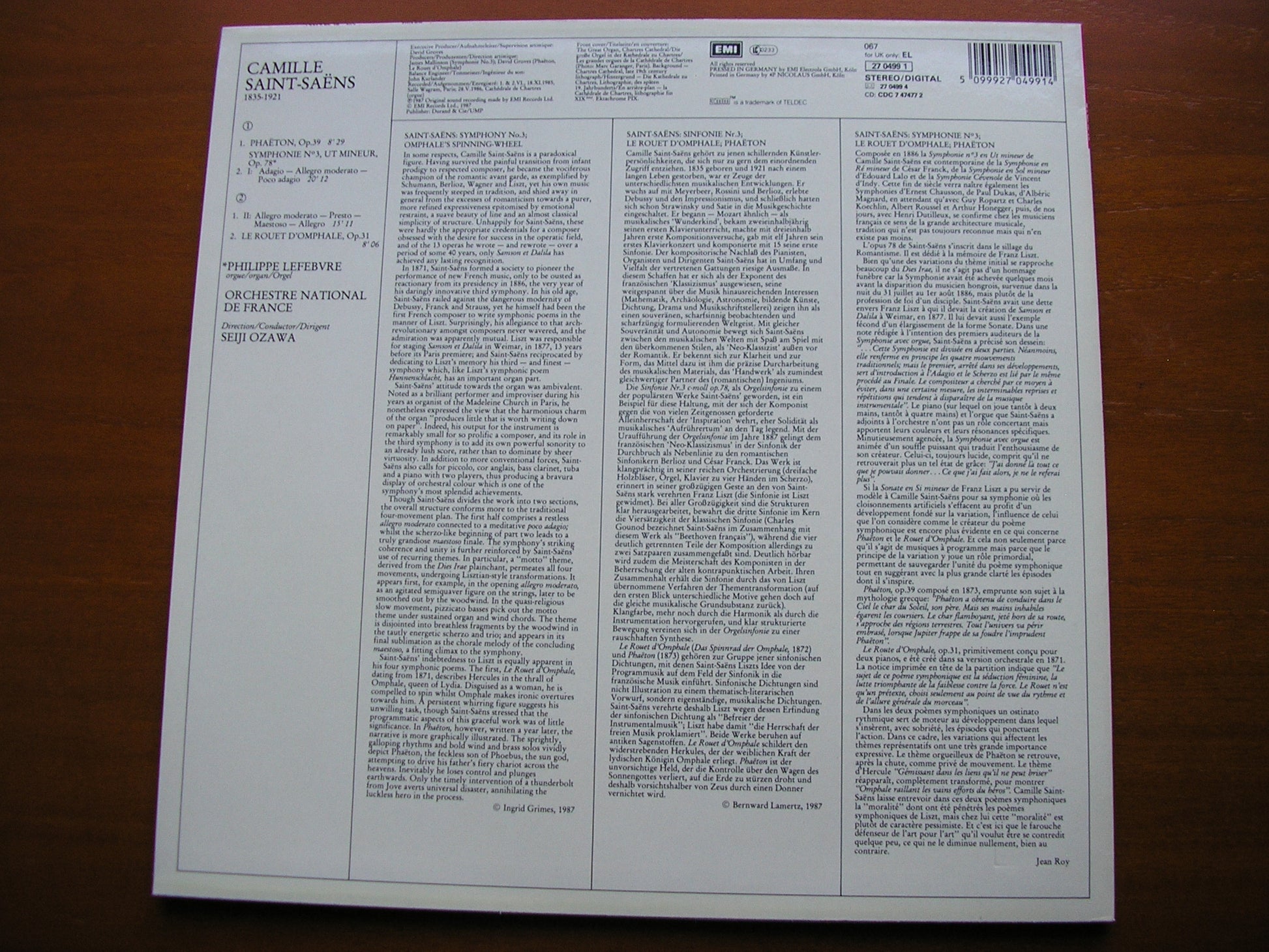 27 0499  SAINT - SAENS: SYMPHONY No. 3 / PHAETON / LE ROUET D'OMPHALE    SEIJI OZAWA / FRENCH NATIONAL ORCHESTRA