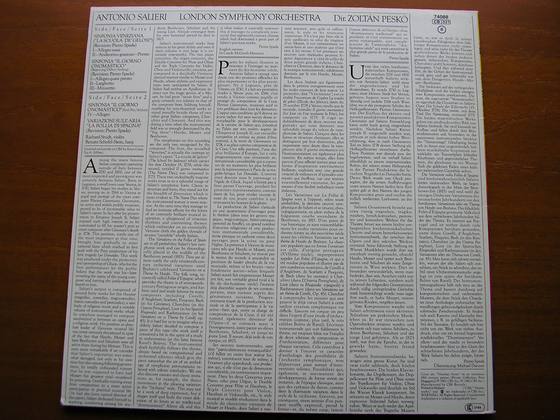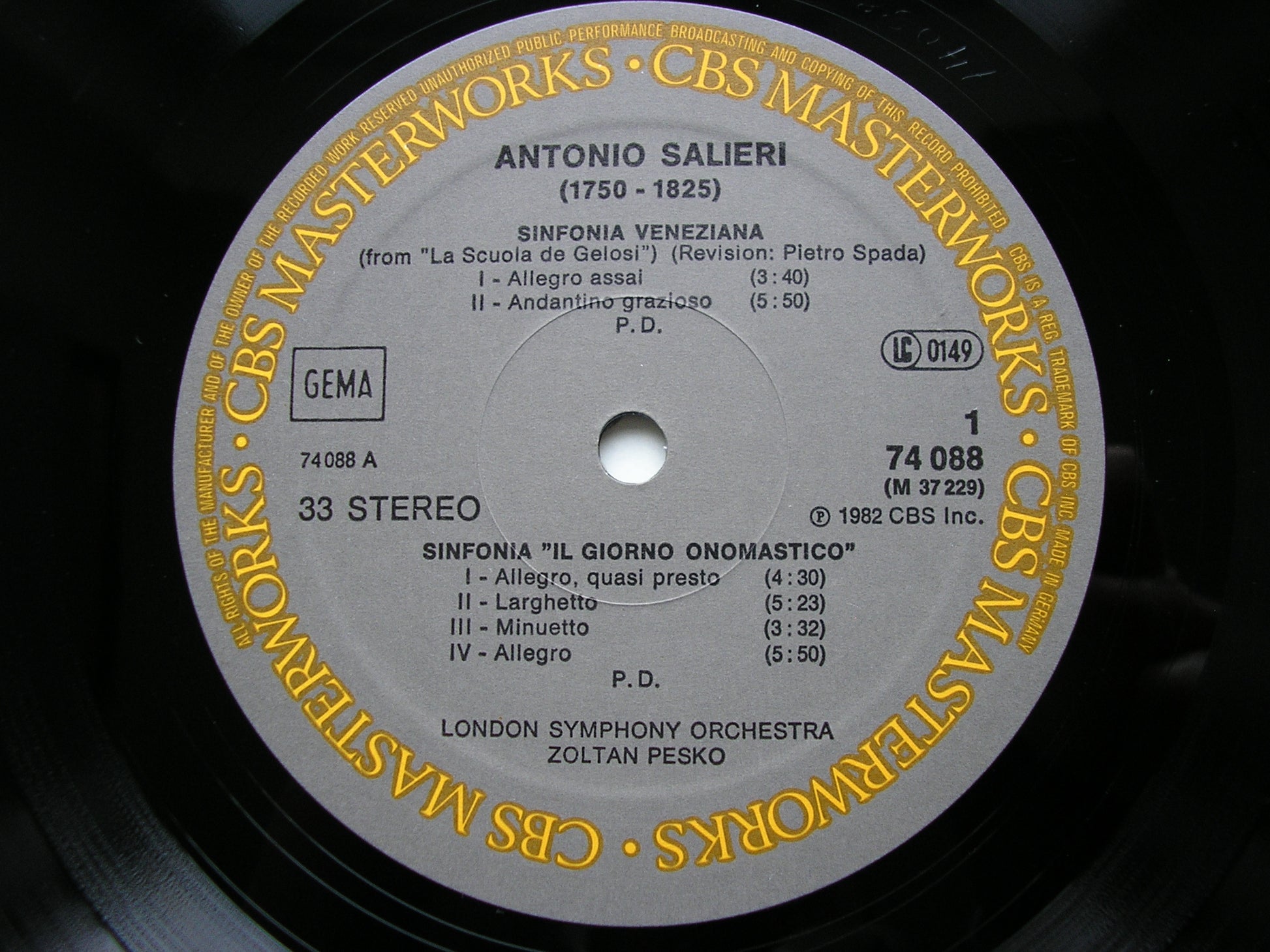 74088  SALIERI: SINFONIA VENEZIANA / SINFONIA 'Il Giorno Onomastico' / VARIATIONS    ZOLTAN PESKO / LONDON SYMPHONY ORCHESTRA