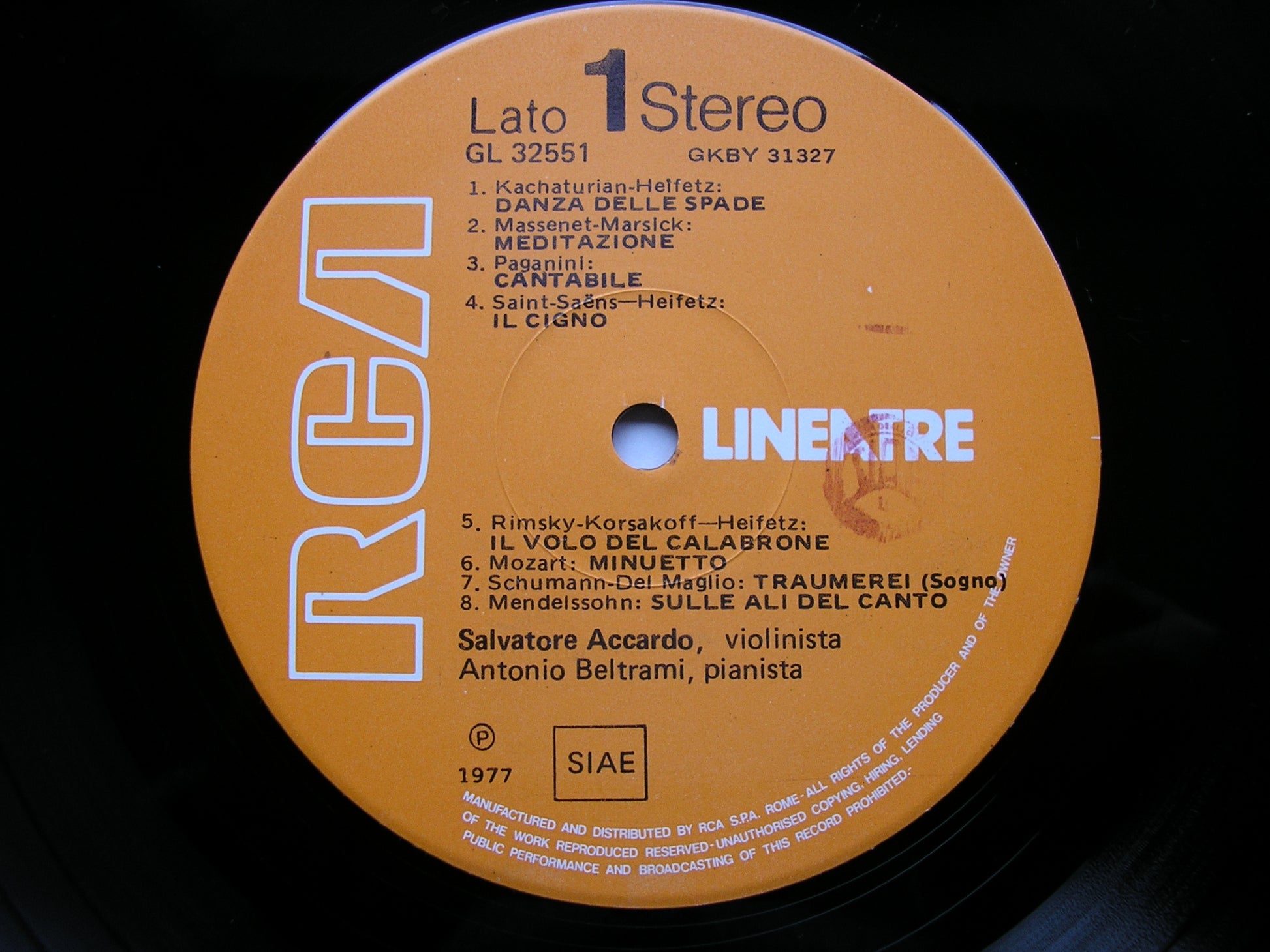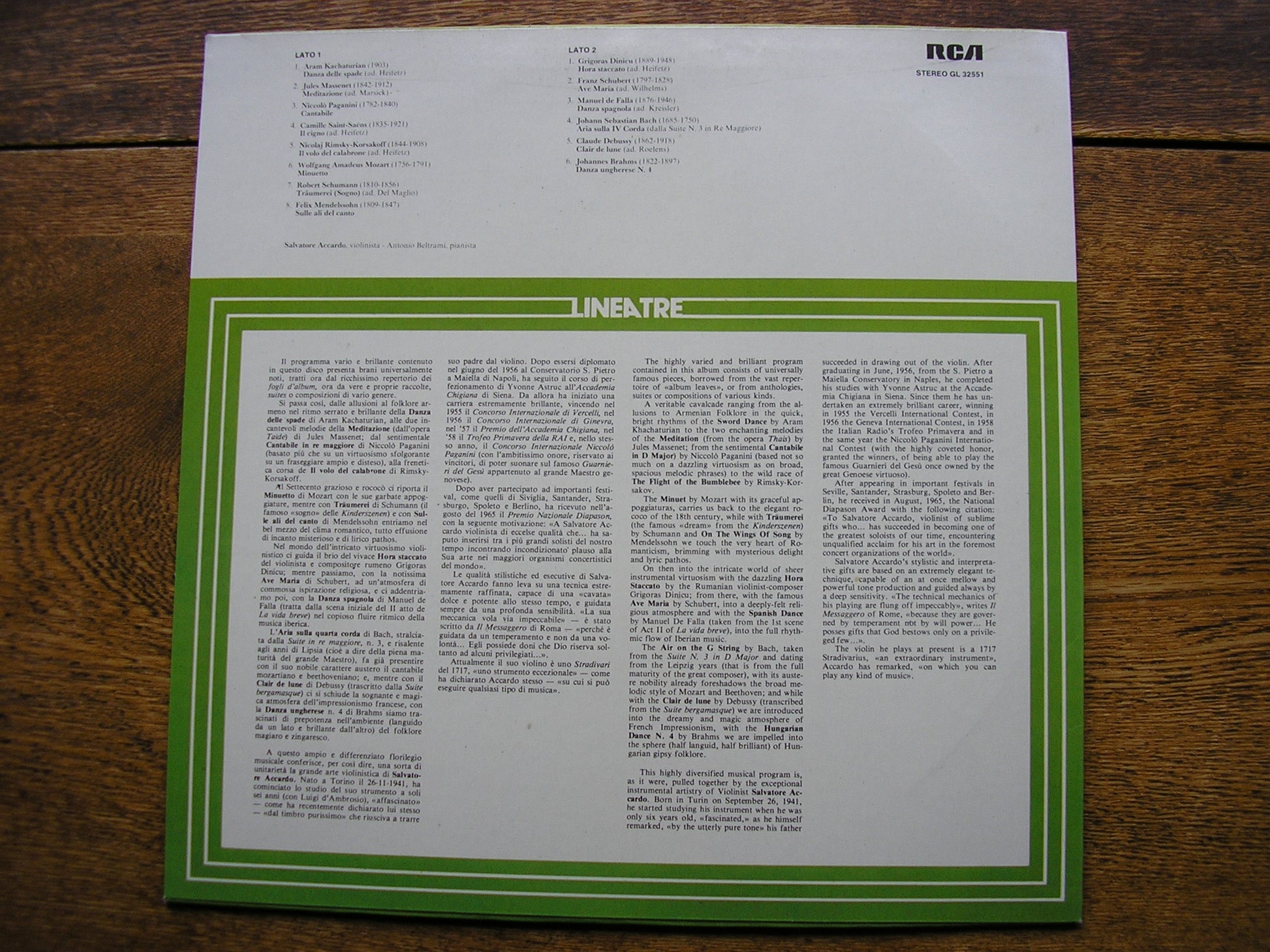 GL 32551  RECITAL BY SALVATORE ACCARDO: KHACHATURIAN / MENDELSSOHN / PAGANINI / SCHUMANN / MASSENET / DINICU / FALLA / BRAHMS / DEBUSSY    SALVATORE ACCARDO / ANTONIO BELTRAMI