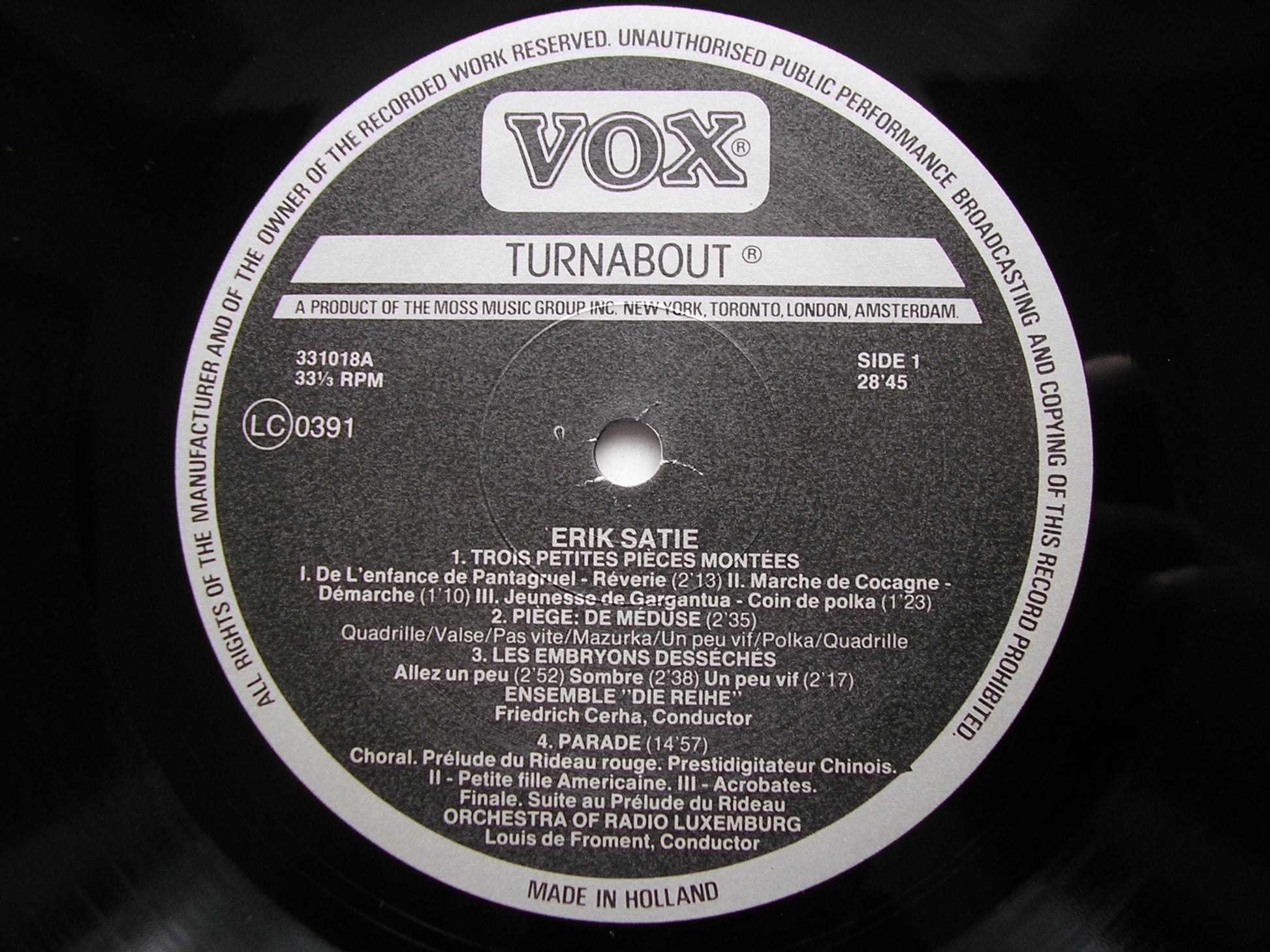 TV 331018  SATIE: ORCHESTRAL MUSIC    LOUIS DE FROMENT / ORCHESTRA OF RADIO LUXEMBOURG