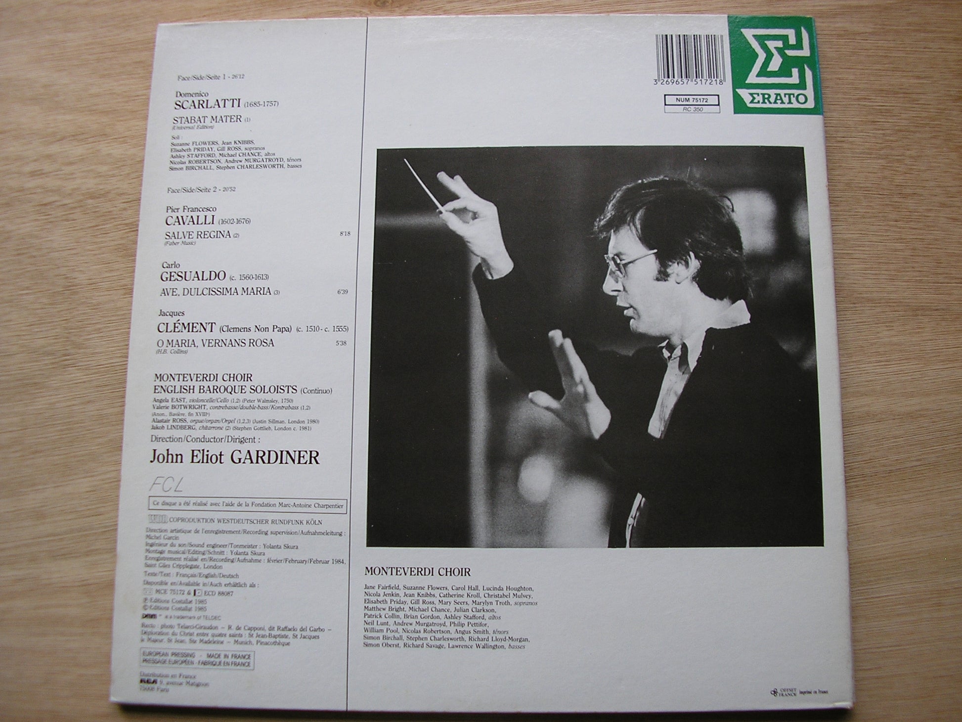 NUM 75172  SCARLATTI: STABAT MATER / CAVALLI: SALVE REGINA / CLEMENT: O MARIA / GESUALDO: AVE, DULCISSIMA MARIA     SOLOISTS / MONTEVERDI CHOIR / ENGLISH BAROQUE SOLOISTS / JOHN ELIOT GARDINER