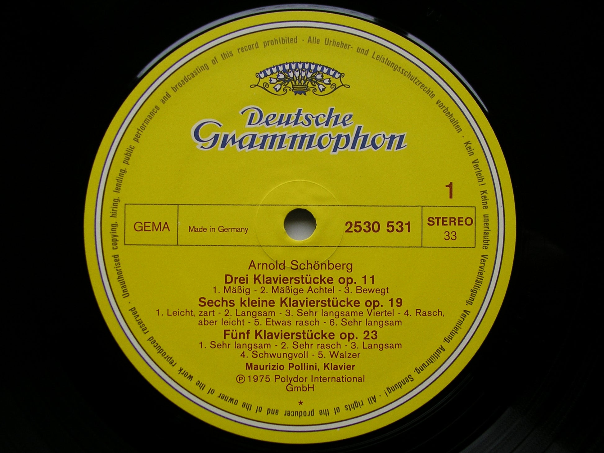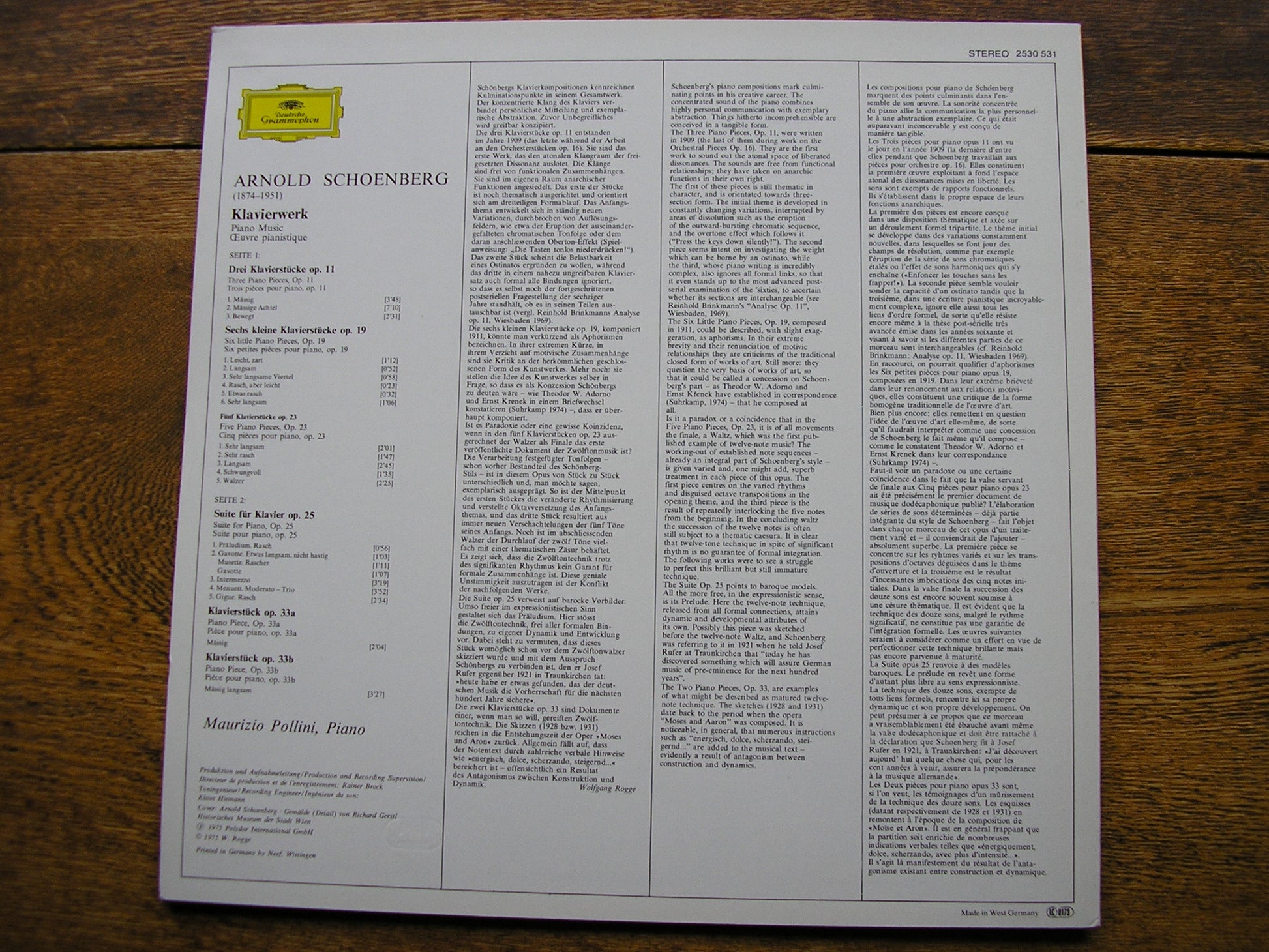2530 531  SCHOENBERG: THREE PIECES Op. 11 / SIX SMALL PIECES Op. 19 / FIVE PIECES Op. 23 / SUITE FOR PIANO Op. 25 / PIANO PIECES OP. 33a & 33b   MAURIZIO POLLINI