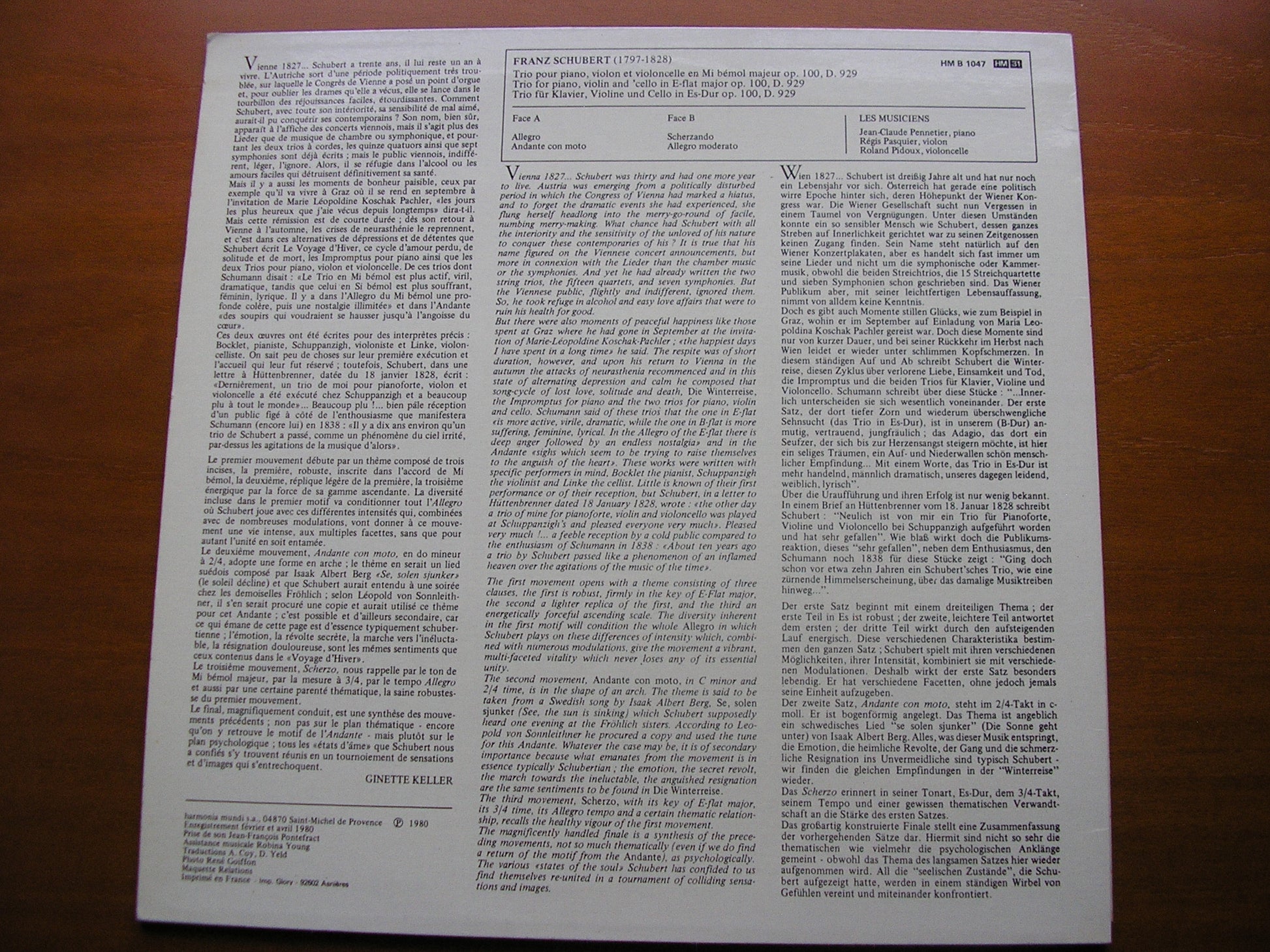 HM B 1047  SCHUBERT: PIANO TRIO in E  D929     LES MUSICIENS