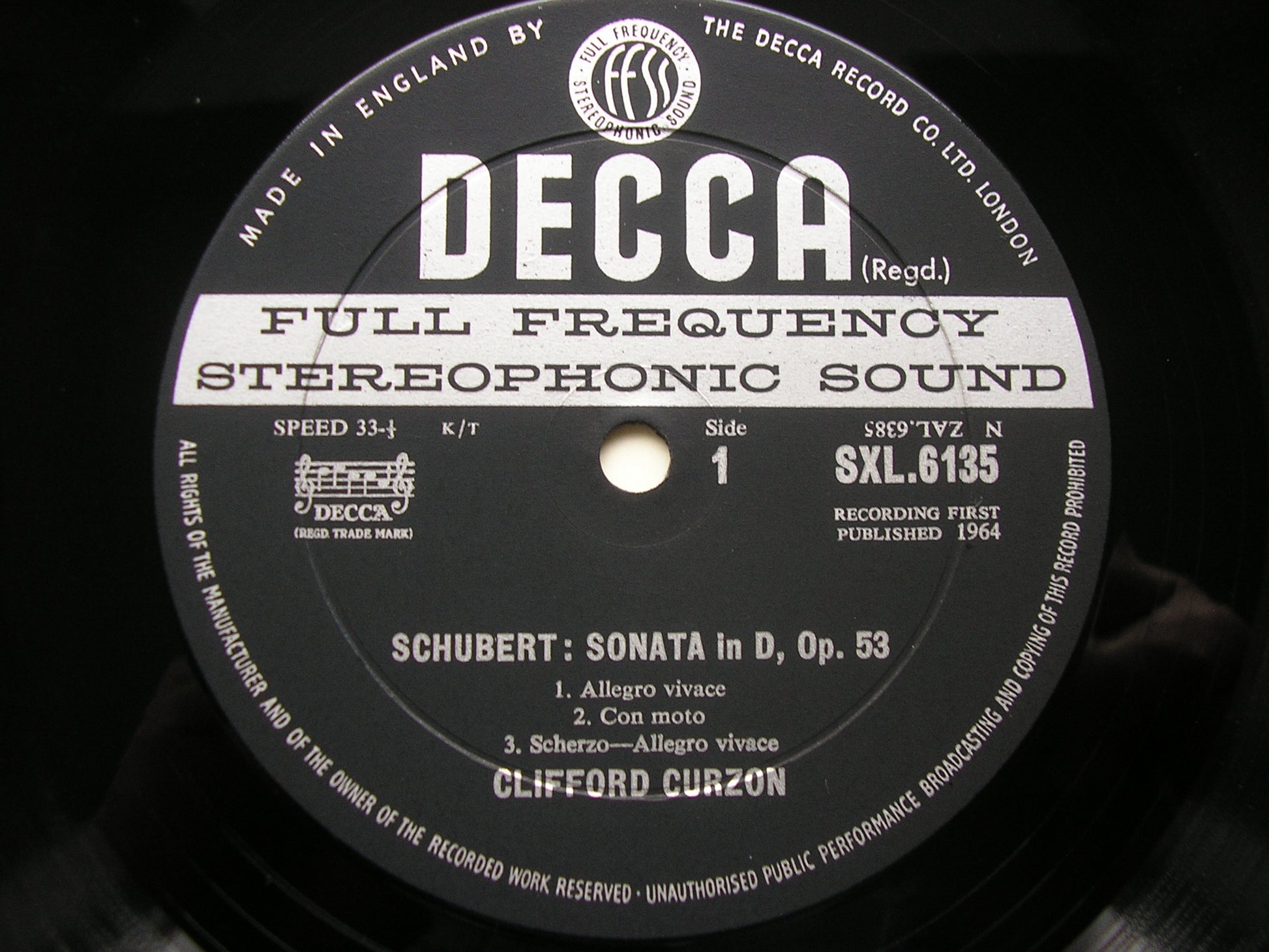 SCHUBERT: SONATA in D Op. 53 / TWO IMPROMPTUS Op. 90 CLIFFORD CURZON SXL 6135
